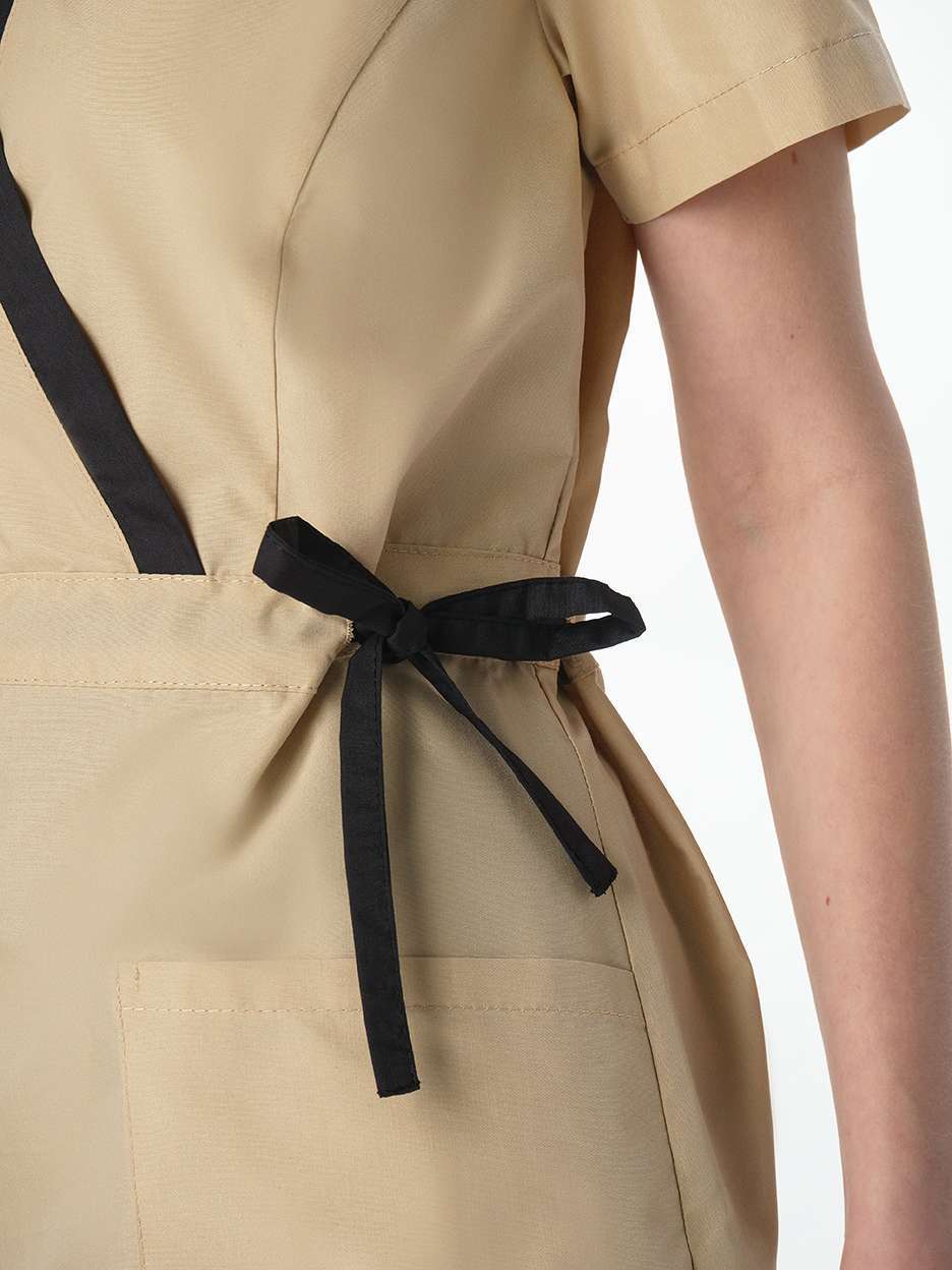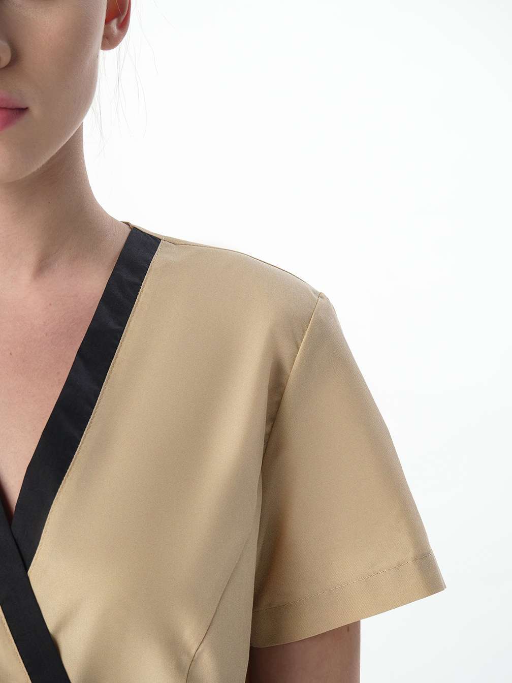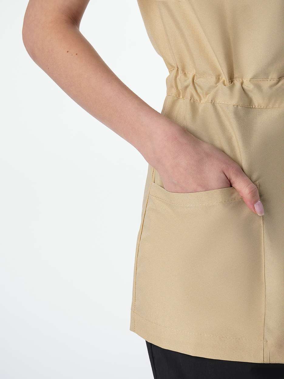 - Блуза: полуприлегающего силуэта с кулисой по линии талии для регулировки ширины, что позволяет адаптировать изделие под индивидуальные параметры. Вместительные карманы на нижней части блузы обеспечивают удобное хранение необходимых мелочей. Короткие рукава добавляют легкости и удобства в движениях.