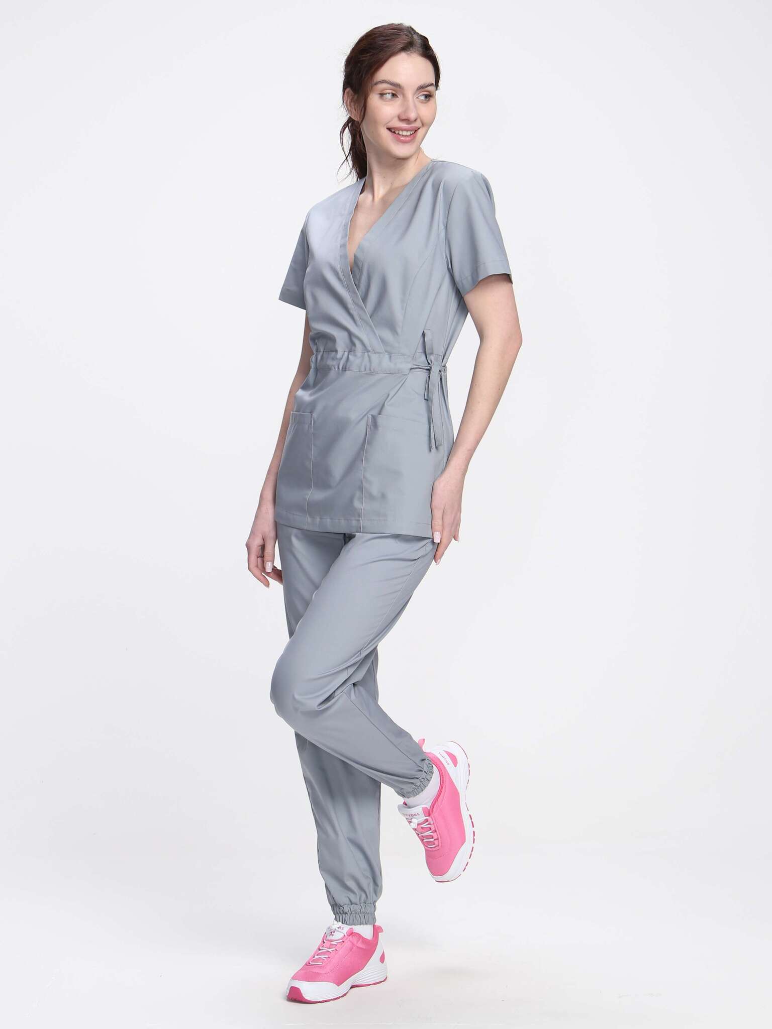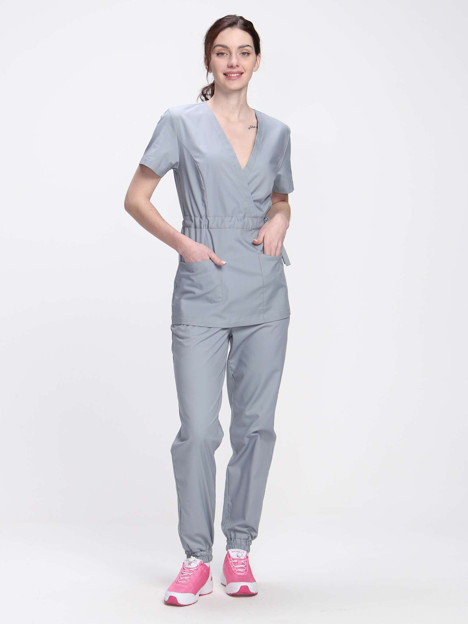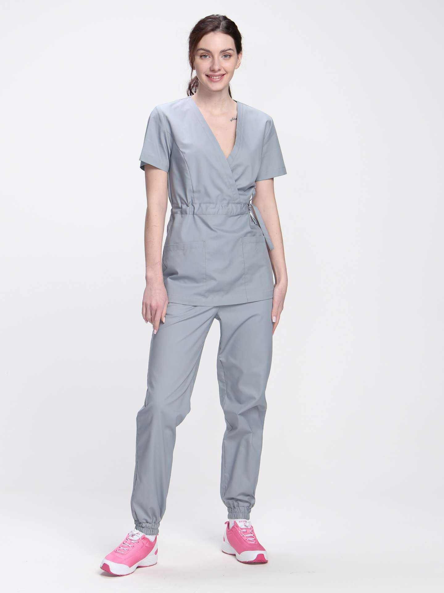 - Комплектность: Включает блузу и брюки, без центральной застежки.