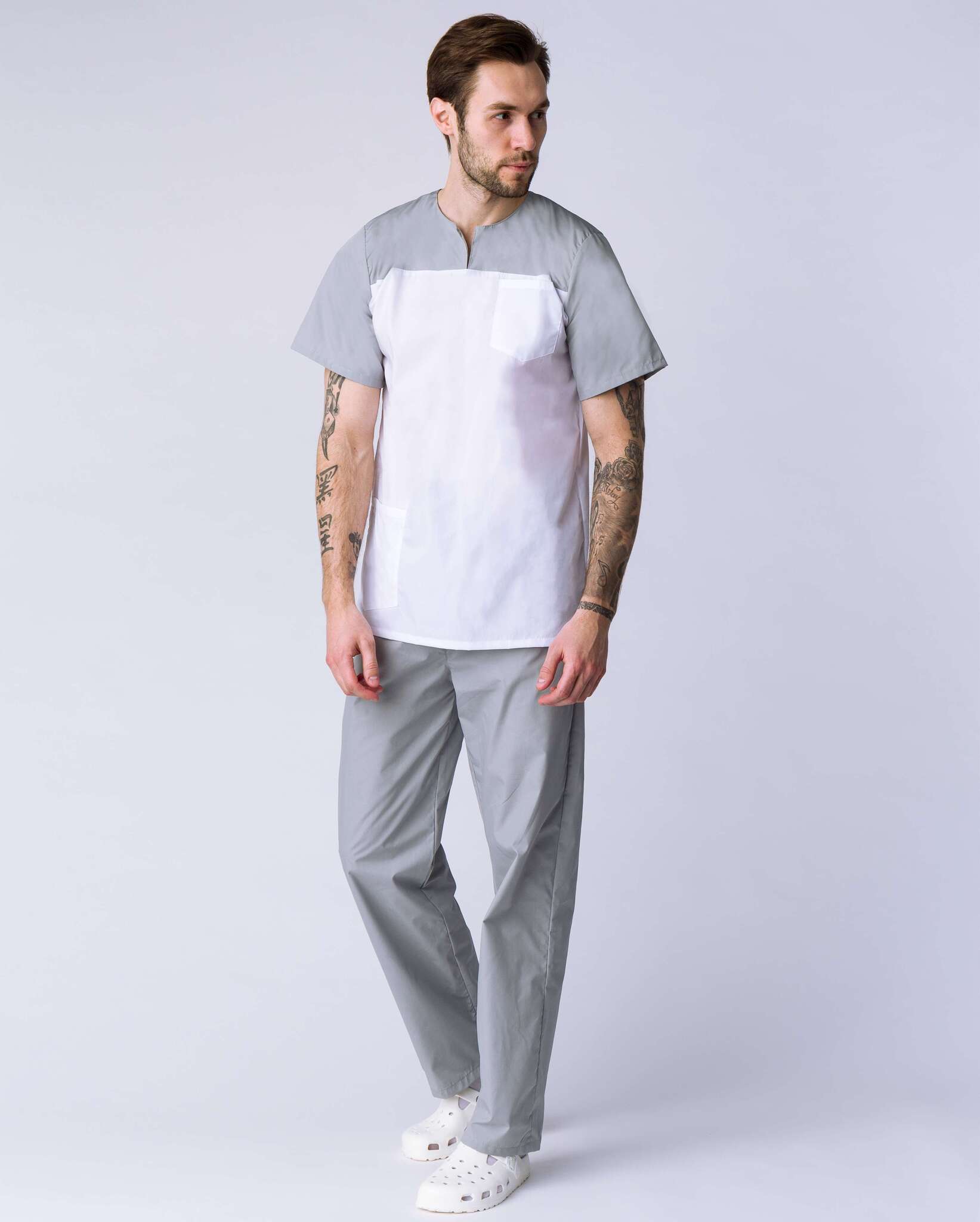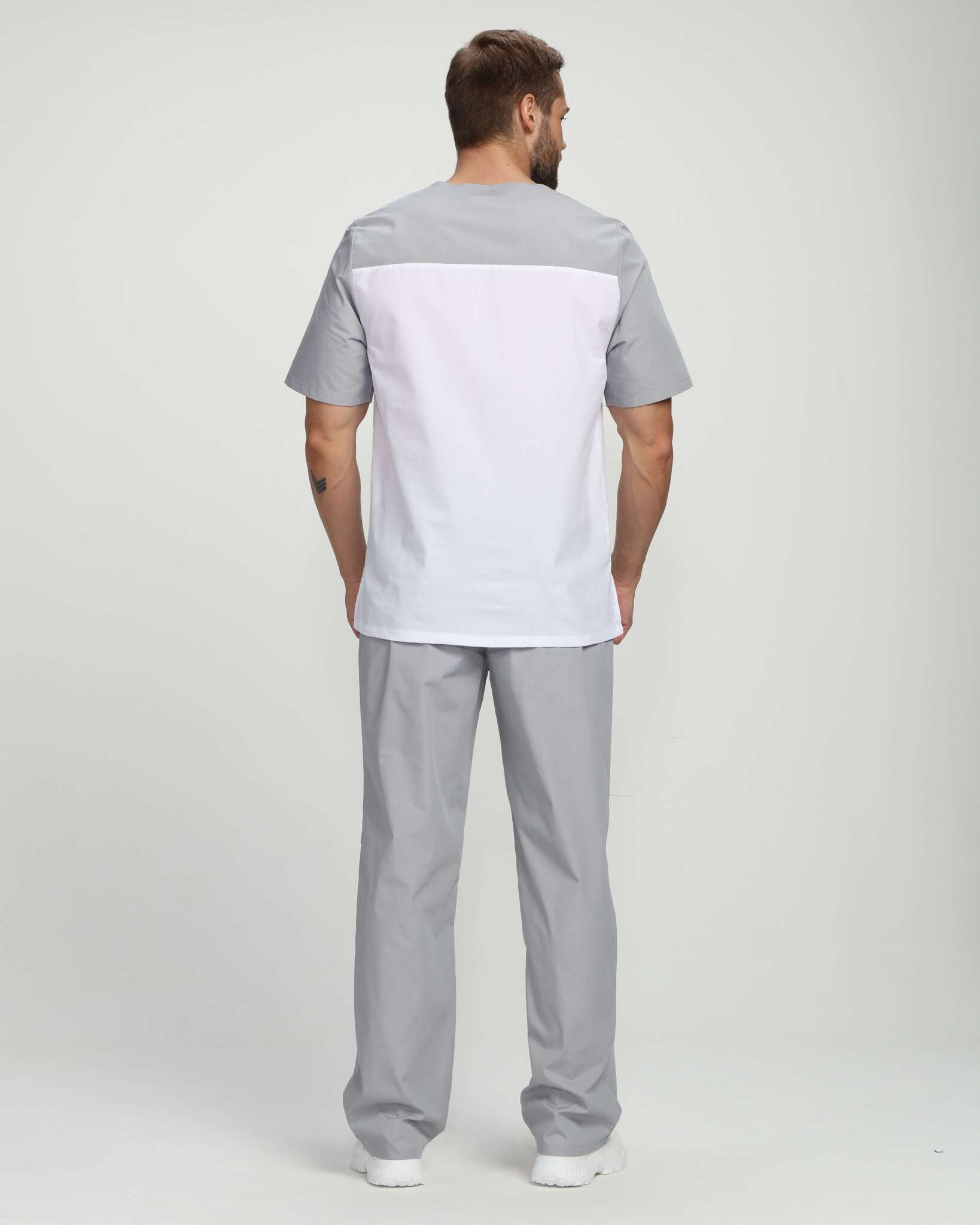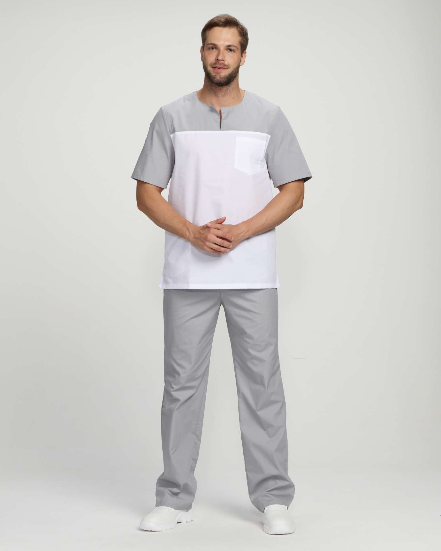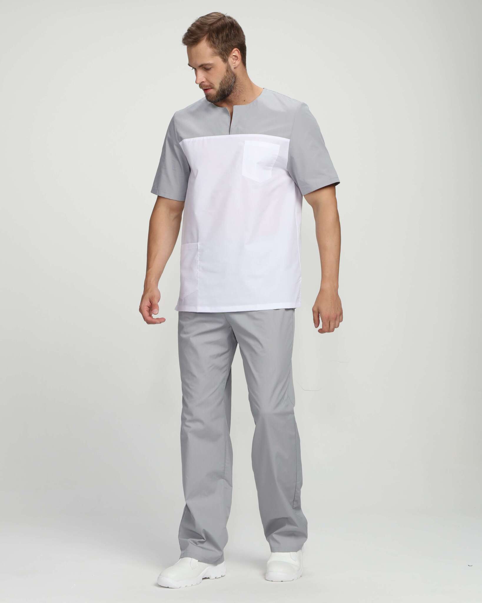 Мужской костюм Стоматолог (ткань ТиСи), серый/белый