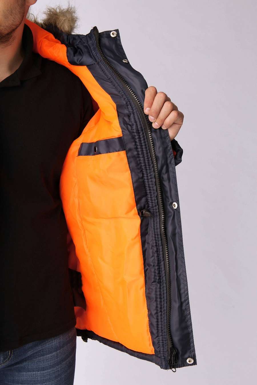 - Застежка: Центральная на тесьму «молния» с ветрозащитными планками, что предотвращает попадание холодного воздуха.
