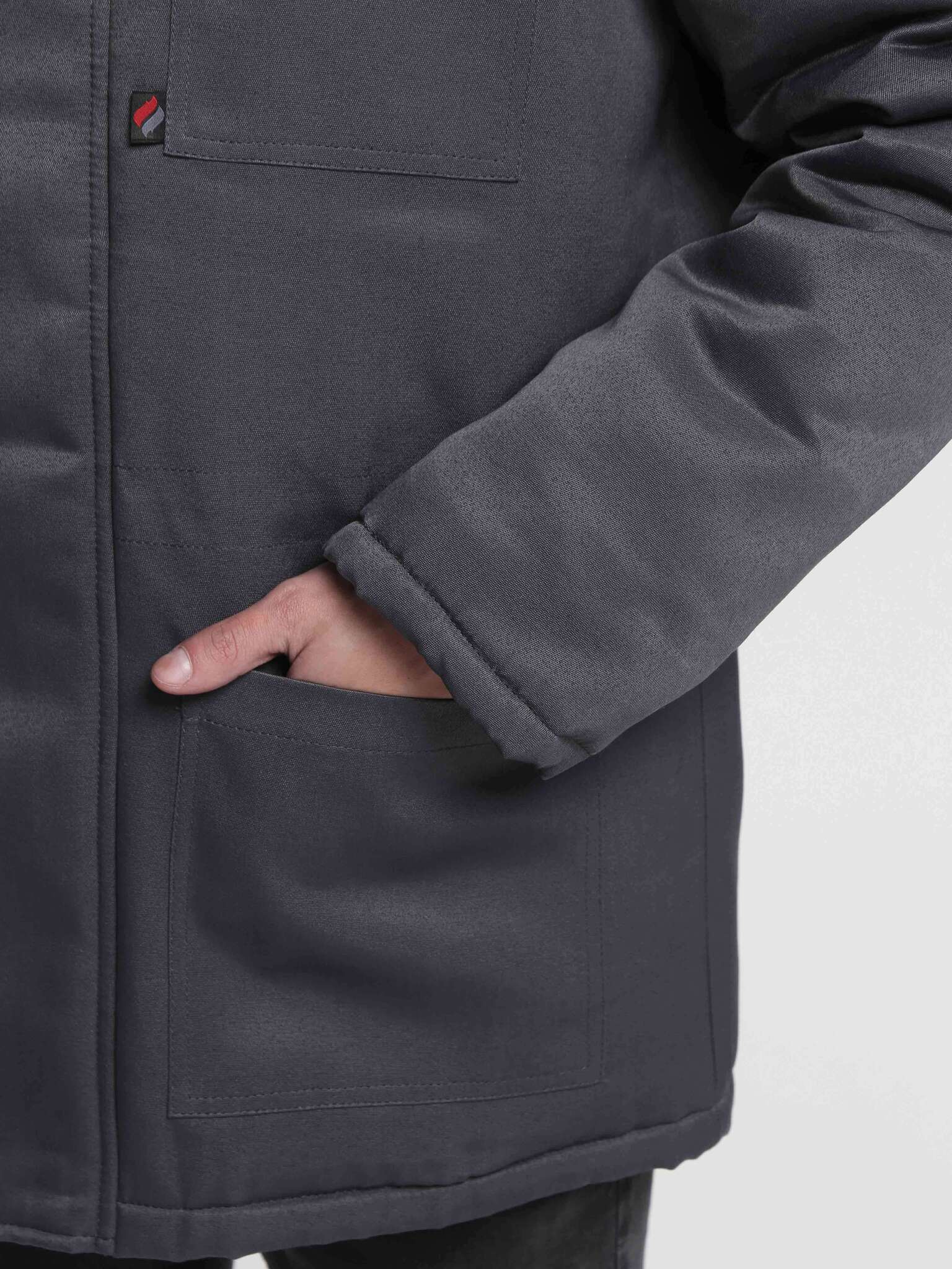 - Подкладка: 100% полиэстер с плотностью 60 гр/м² и искусственный мех «Вельбоа» (230 гр/м²) для дополнительного тепла.