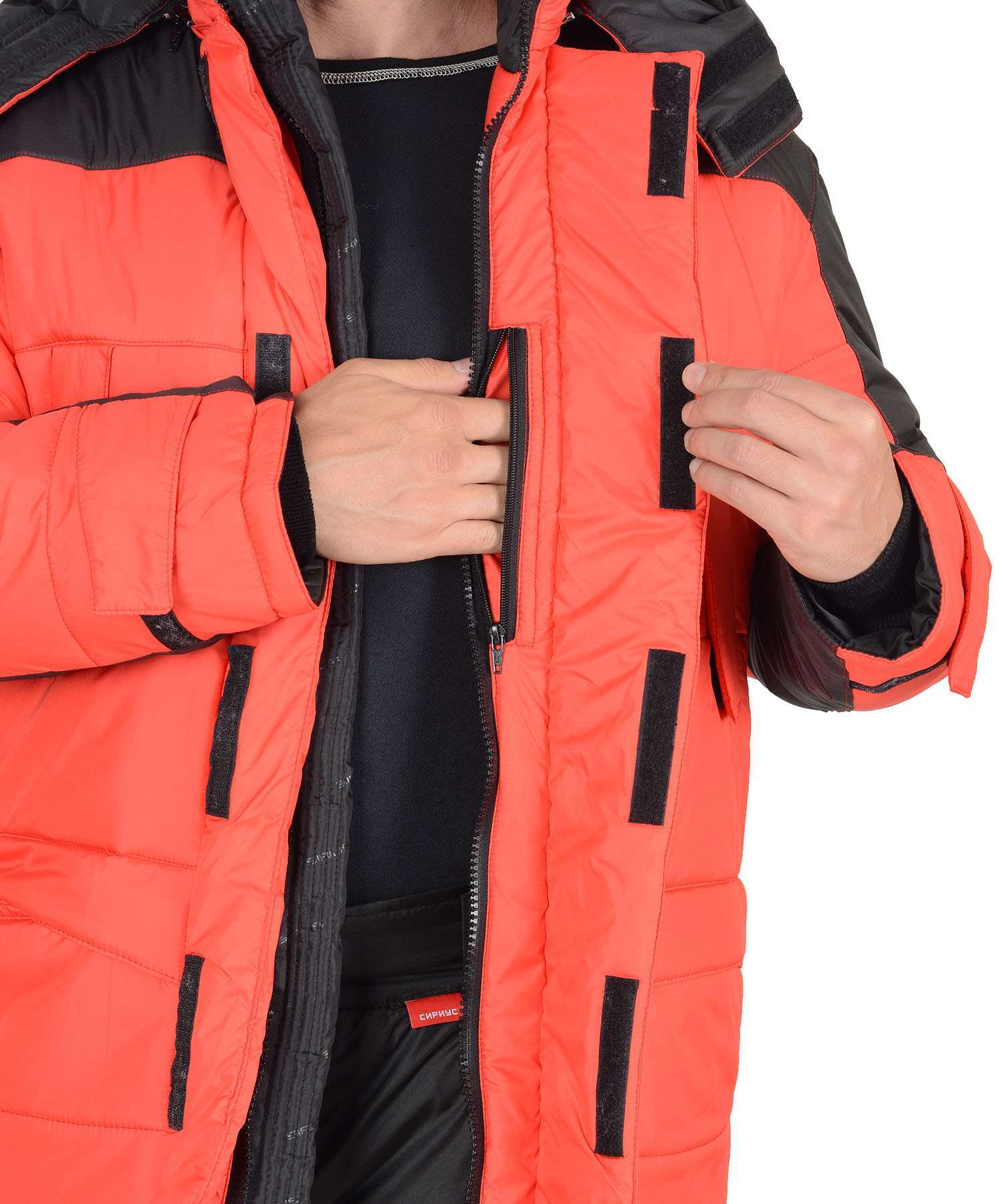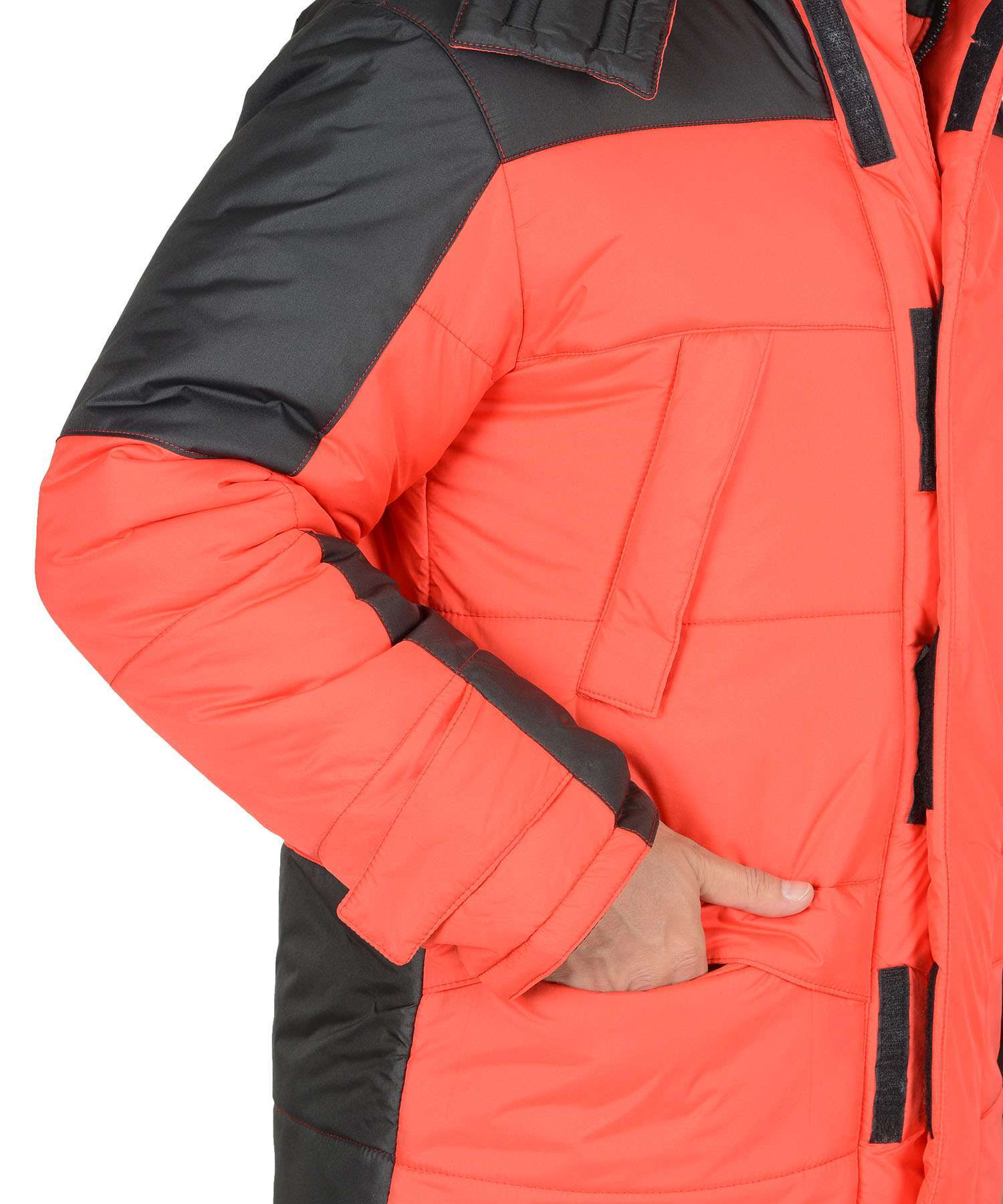 - Дополнительные элементы: капюшон, ветрозащитные клапаны и центральная бортовая застежка на молнии для максимальной защиты.