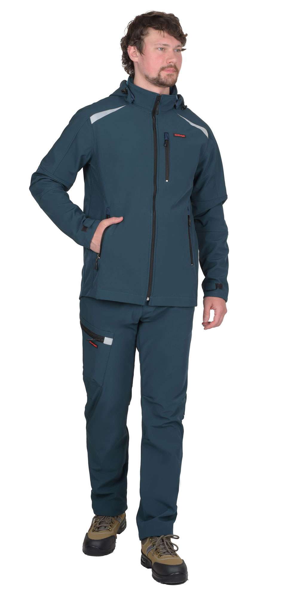 - Материал: Софтшелл с мембраной, обеспечивающий водоотталкивающие и ветронепроницаемые свойства.
