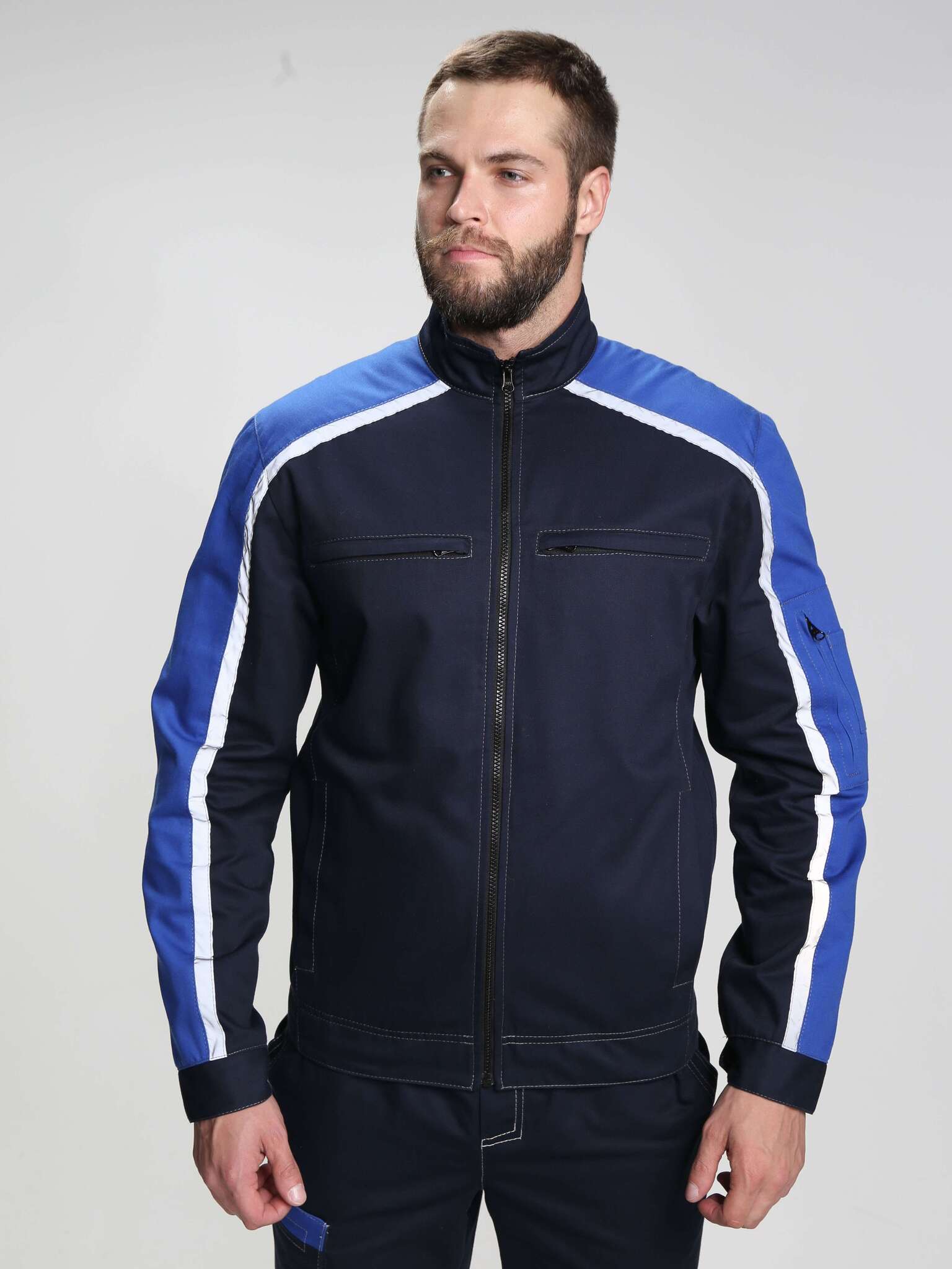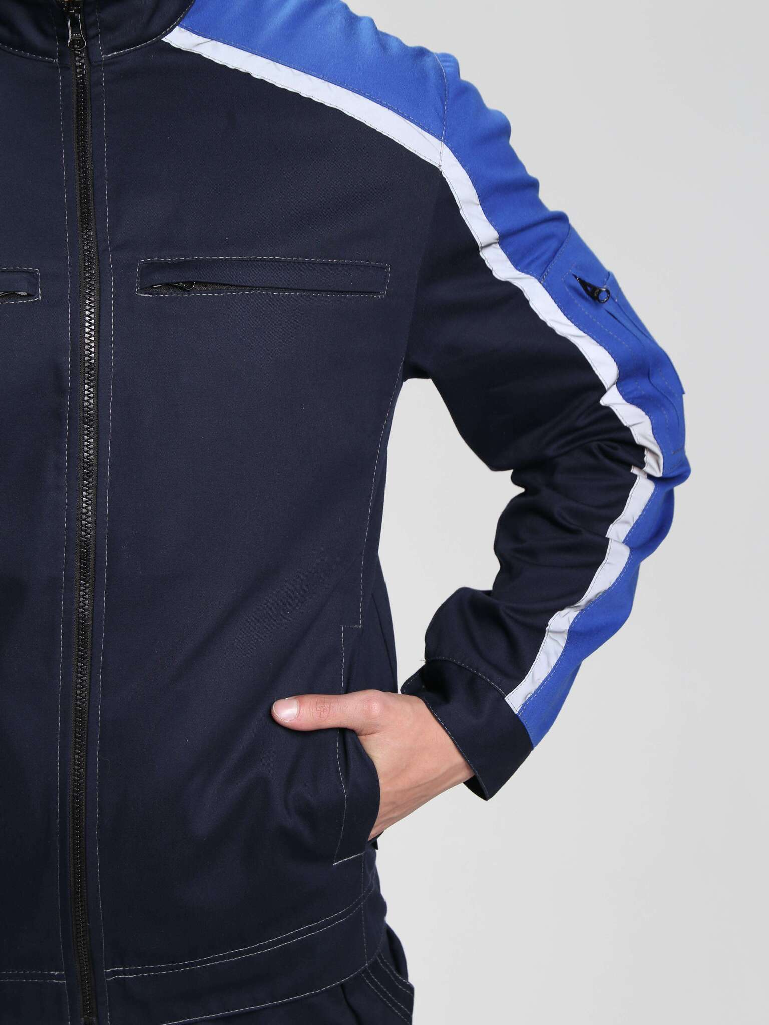 - Карманная система: Прорезные карманы на молнии и накладной карман на рукаве с зональным делением позволяют удобно хранить необходимые инструменты и документы.