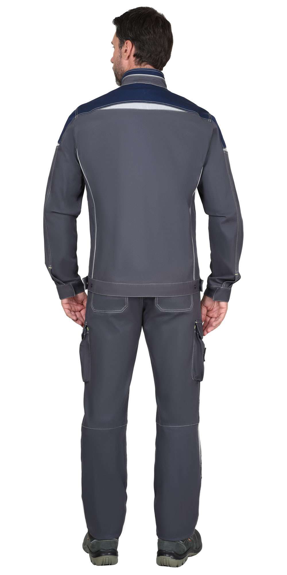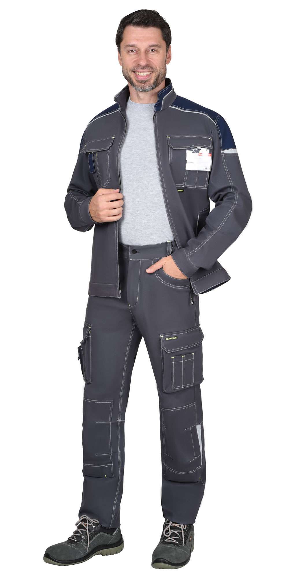 - Цвет: темно-серый с синей отделкой — стильное и практичное решение для корпоративной униформы.