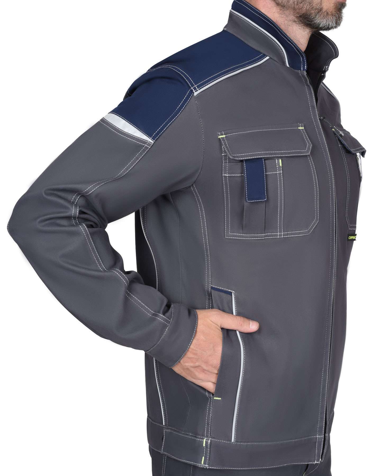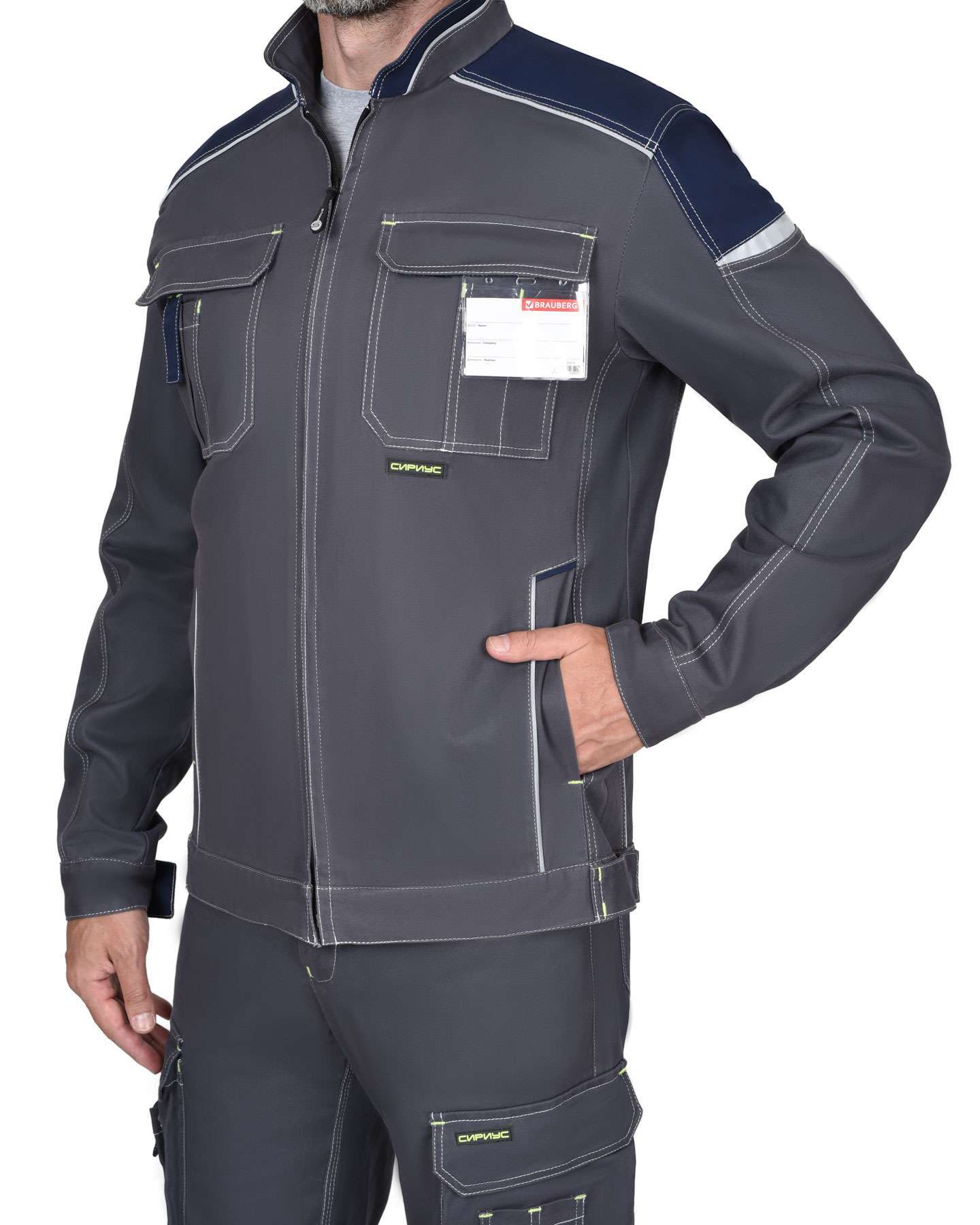 - Безопасность: светоотражающая полоса для повышения видимости сотрудников в условиях недостаточной освещенности.
