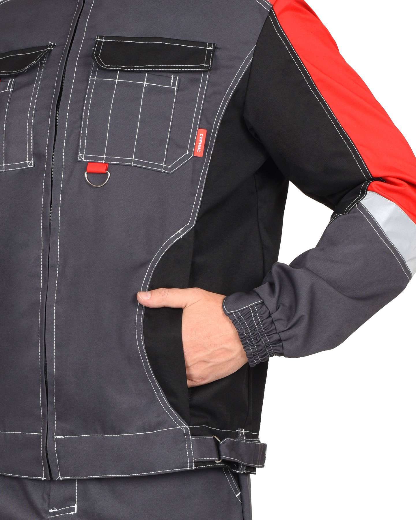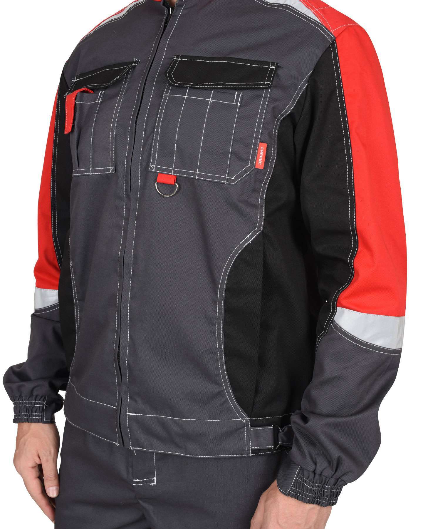 - Светоотражающая полоса: наличие светоотражающих элементов (СОП) повышает видимость в условиях низкой освещенности, что особенно важно для работников на производстве.