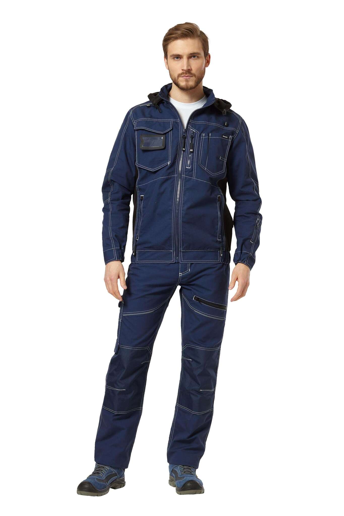- Карманы: несколько карманов, включая нагрудные с отделениями для канцелярии и держателем для бейджа.