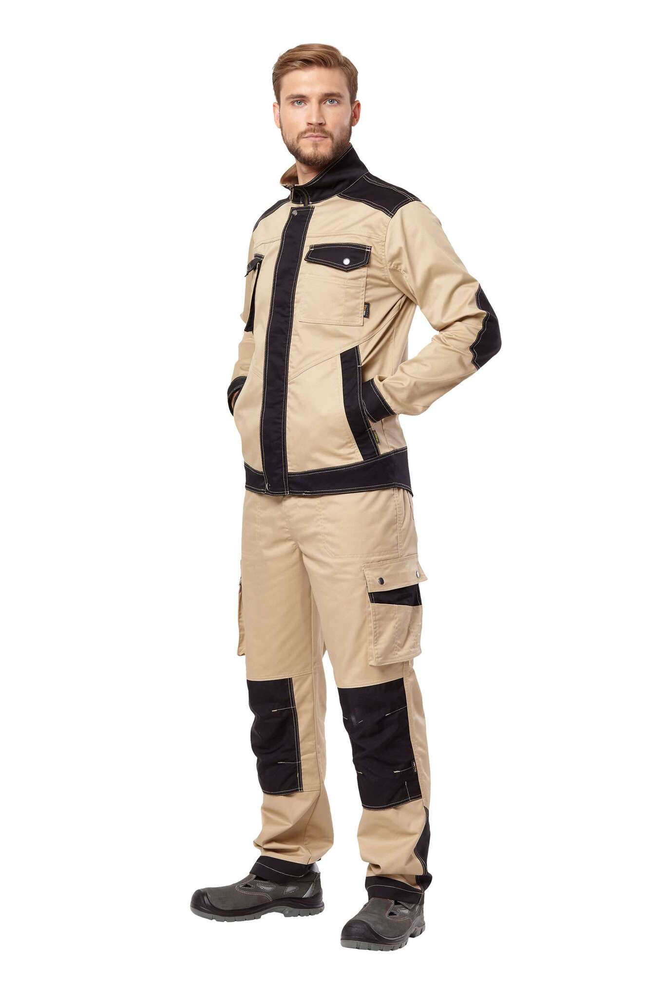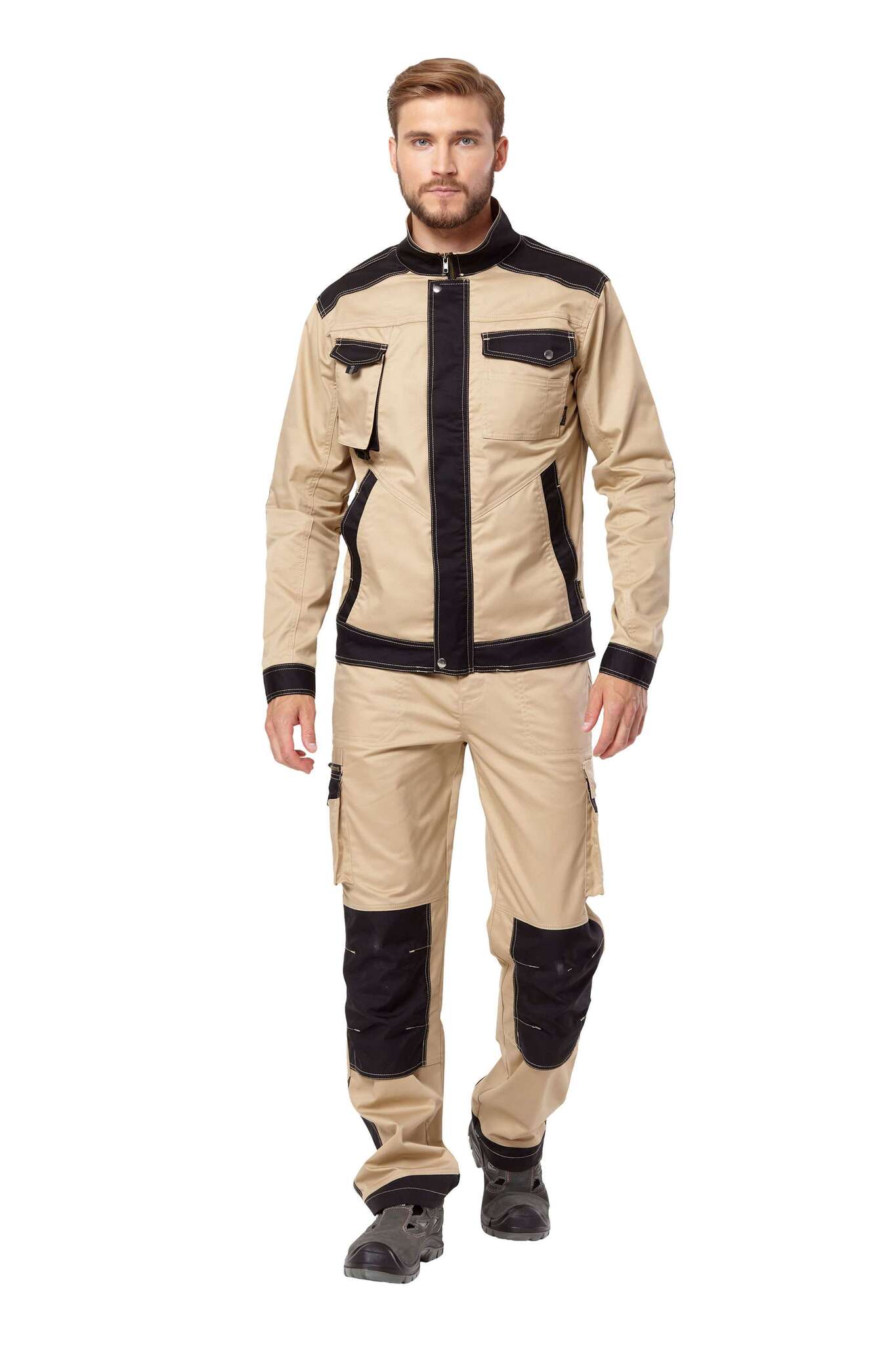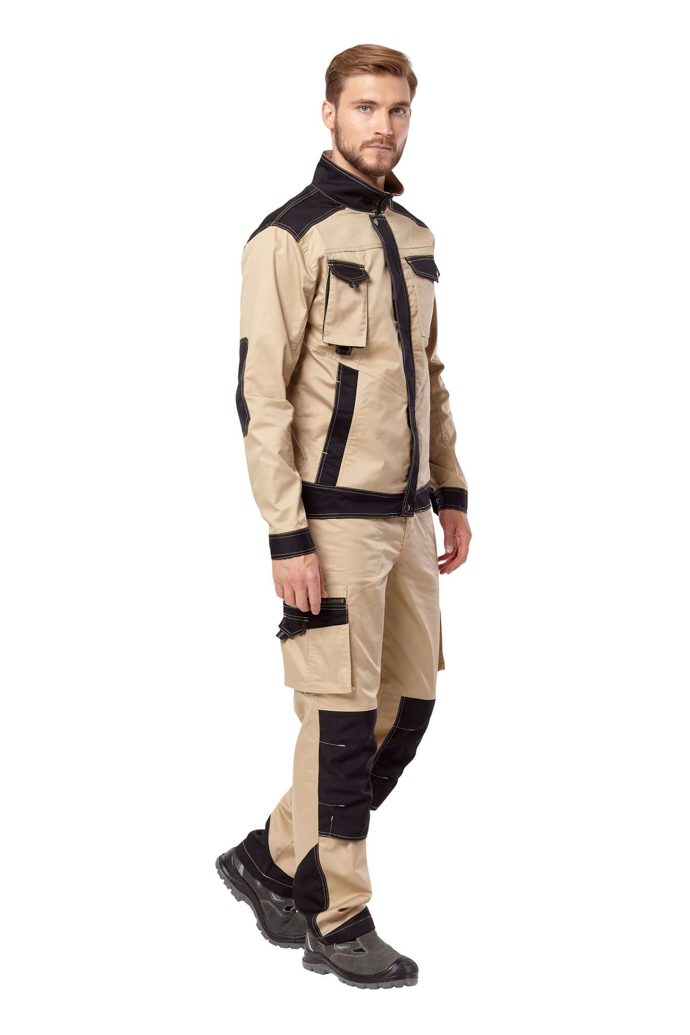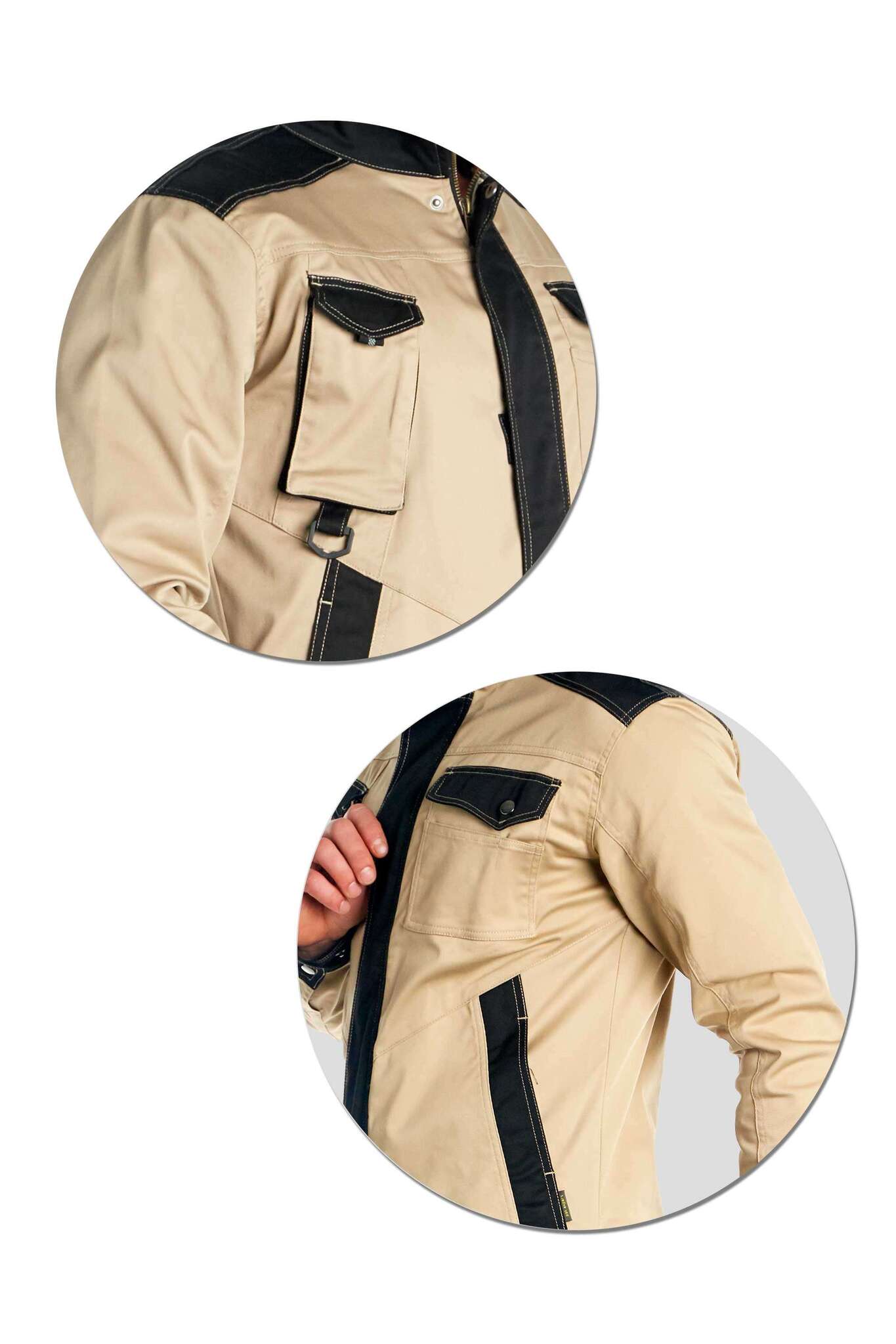 Куртка рабочая мужская летняя 'Velar' в стильном сочетании бежевого и черного цветов - это надежная защита от производственных загрязнений и комфорт в работе. Изготовленная из смесовой ткани, она обеспечивает отличную износостойкость и свободу движений, что делает её идеальным выбором для предприятий и заводов.