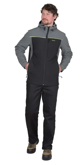 - Материал: Основная ткань - «Софтшелл» с водоотталкивающей пропиткой, что гарантирует защиту от влаги.