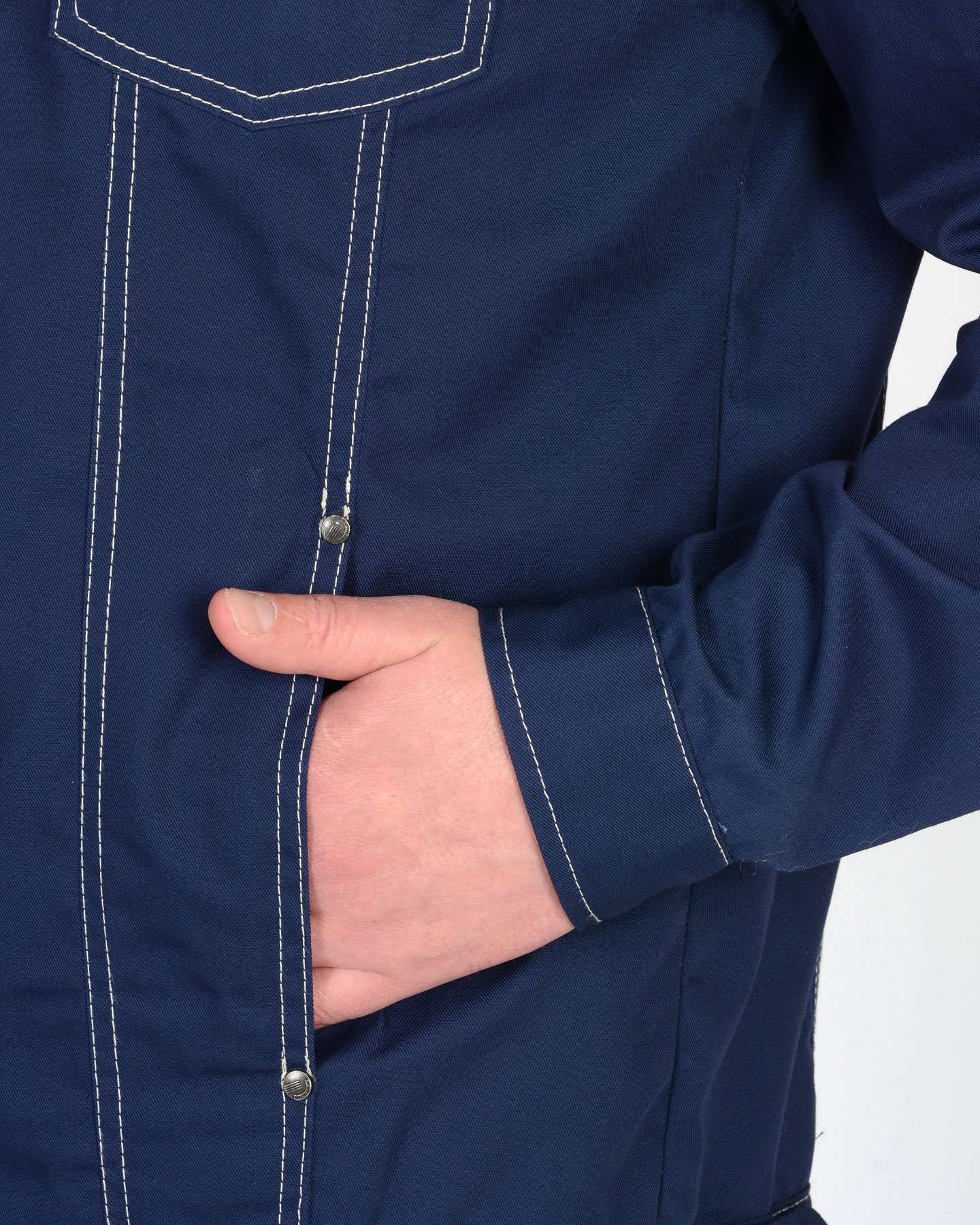 Куртка СИРИУС-ТЕХАС синяя — это надежное решение для предприятий и заводов, которые ценят качество и функциональность. Эта короткая куртка прямого силуэта создана для обеспечения максимального комфорта и защиты в условиях работы. Центральная застежка на металлическую молнию и прочные манжеты на джинсовых пуговицах гарантируют долговечность и практичность в использовании.