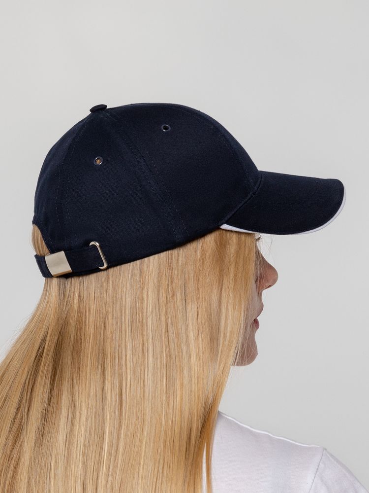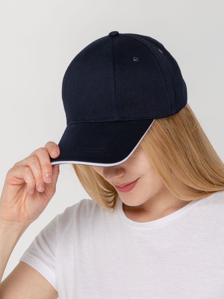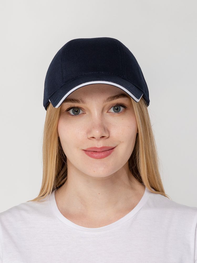 Бейсболка Canopy в темно-синем цвете с белым кантом — это не просто аксессуар, а мощный инструмент для продвижения вашего бренда. Она сочетает в себе стильный дизайн и практичность, что делает ее идеальным выбором для предприятий и заводов, стремящихся подчеркнуть свою индивидуальность. Удобная модель с шестью клиньями обеспечивает комфорт при длительном ношении, а козырек-сэндвич с контрастной вставкой добавляет изюминку.