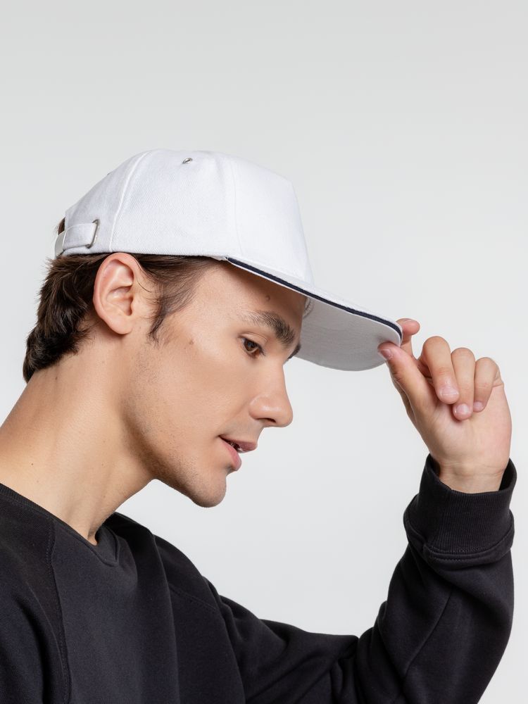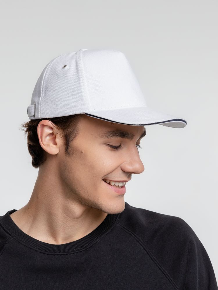 Бейсболка Classic в белом цвете с темно-синим кантом — это не просто аксессуар, а функциональный элемент, который подчеркнет стиль вашей команды. Изготовленная из 100% хлопка с плотностью 340 г/м², эта модель обеспечивает долговечность и комфорт в использовании. Регулируемая металлическая застежка и вентиляционные отверстия с люверсами гарантируют оптимальную посадку и отличную циркуляцию воздуха, что делает бейсболку идеальной для длительного ношения.