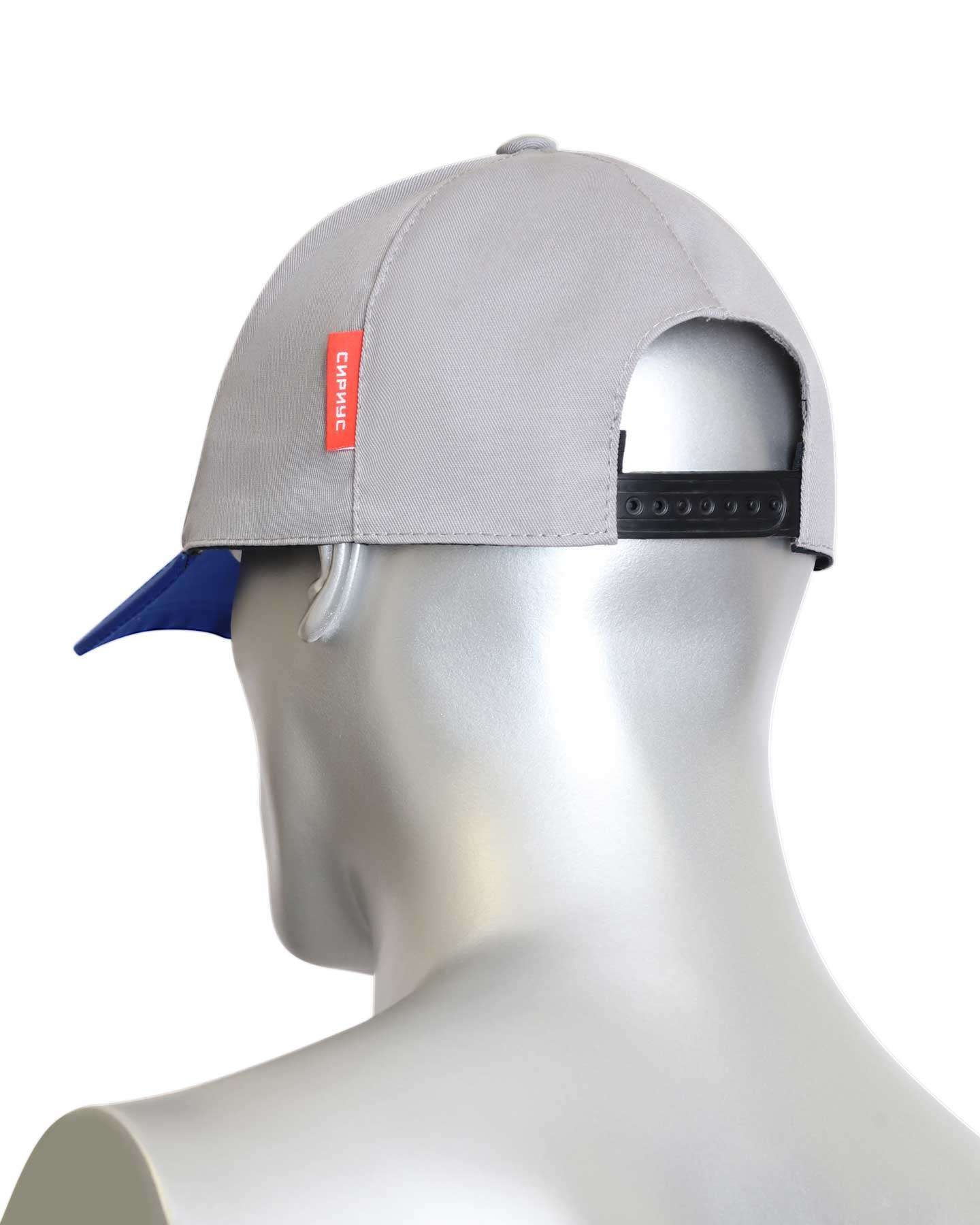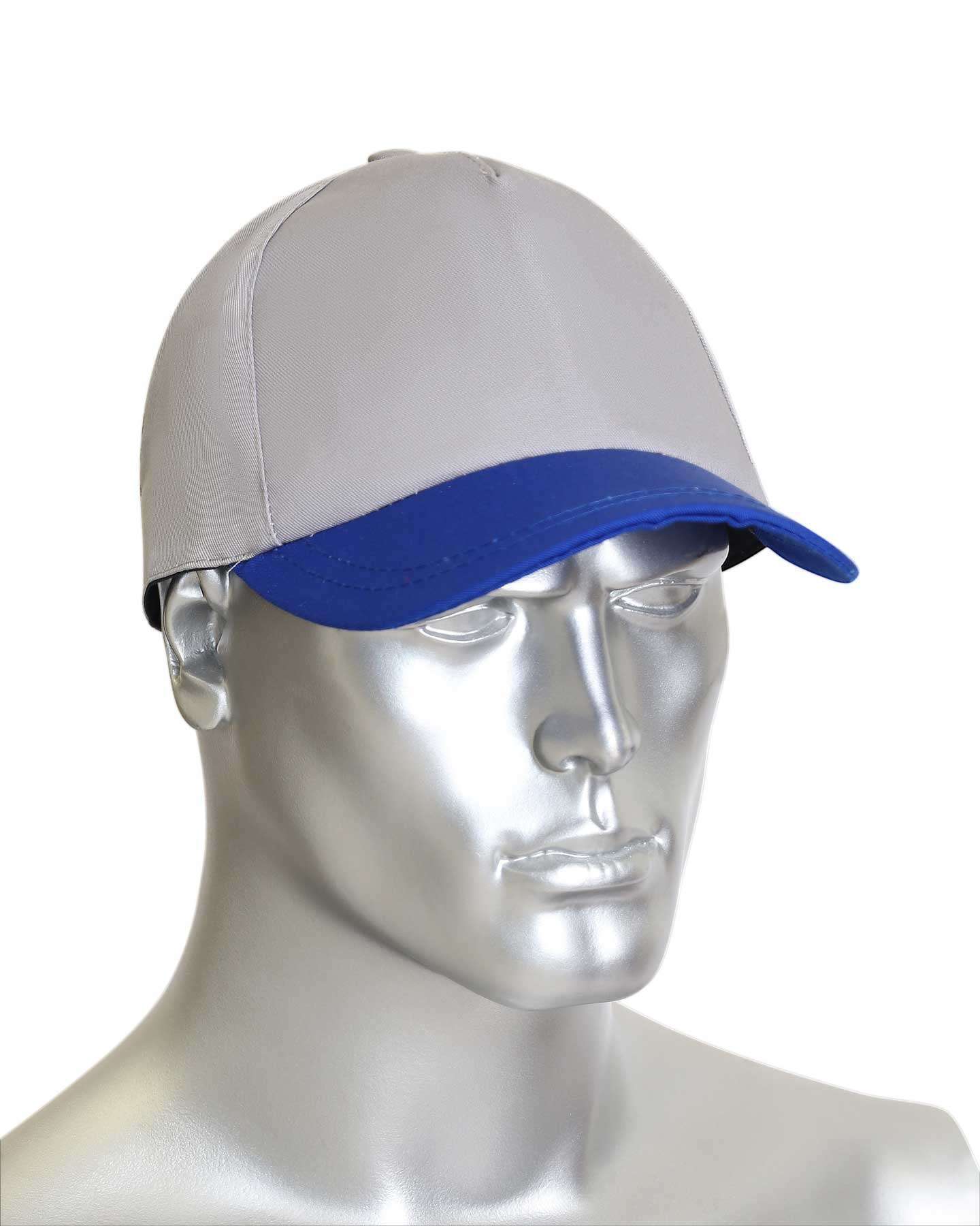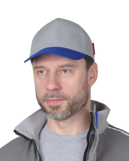 Кепка-бейсболка светло-серая с васильковым