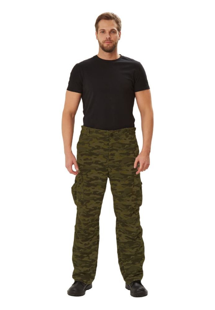 - Брюки: свободного кроя с широким поясом и усилительными накладками в области сидения. Боковые карманы с клапанами и фиксированные кулисы на коленях обеспечивают удобство и функциональность.