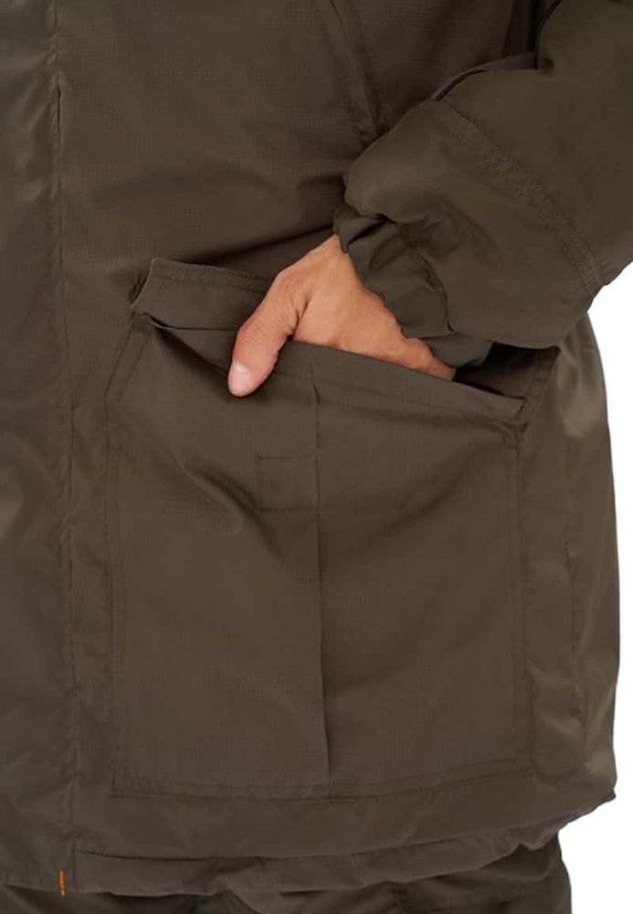 - Функциональные элементы: Куртка имеет множество карманов, ветрозащитные планки и регулируемый капюшон, а брюки оснащены отстегивающейся утепленной спинкой и усиленными накладками.