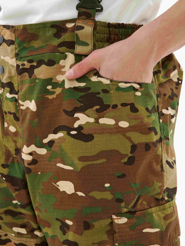 - Брюки: Пояс на широкой резинке и усиленная задняя часть для дополнительной прочности и удобства.