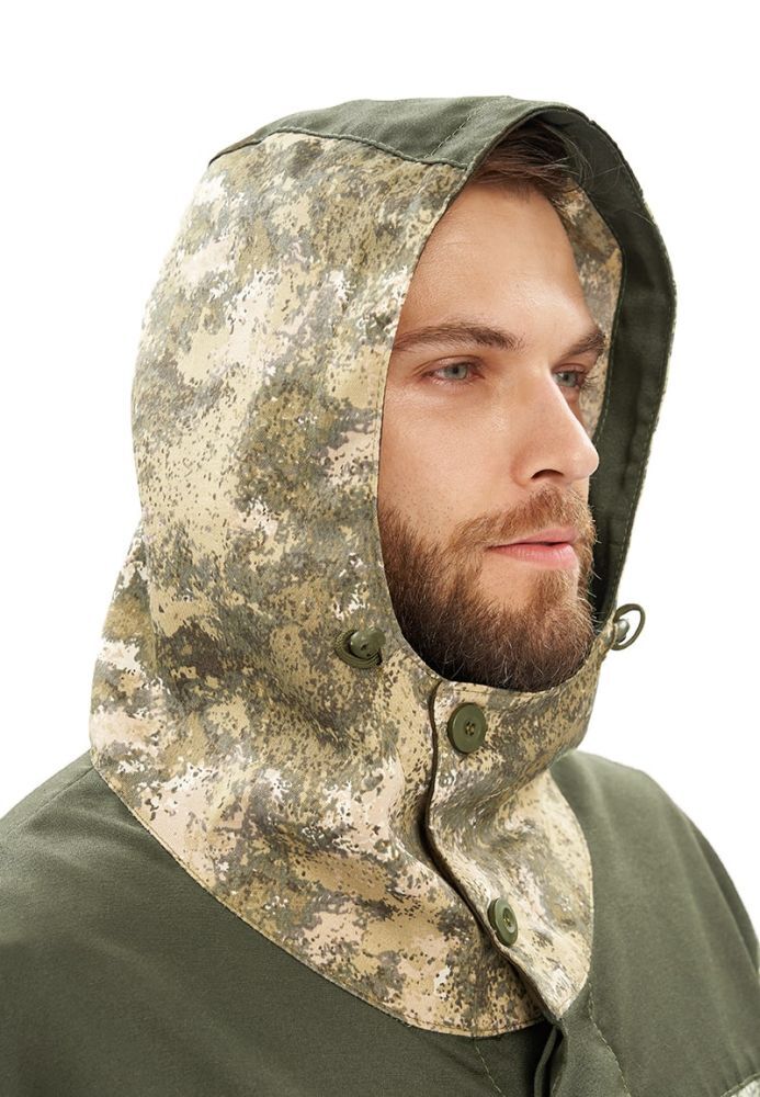 - Капюшон: втачной с углубленной линией горловины, регулируемый по высоте с помощью утягивающей кулисы.