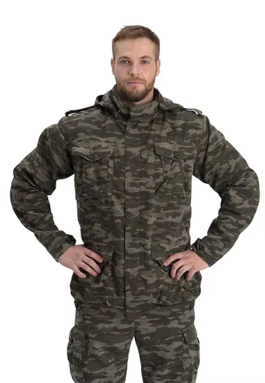 - Регулируемость: Воротник-стойка с возможностью пристегивания съемного капюшона, который регулируется по объему.