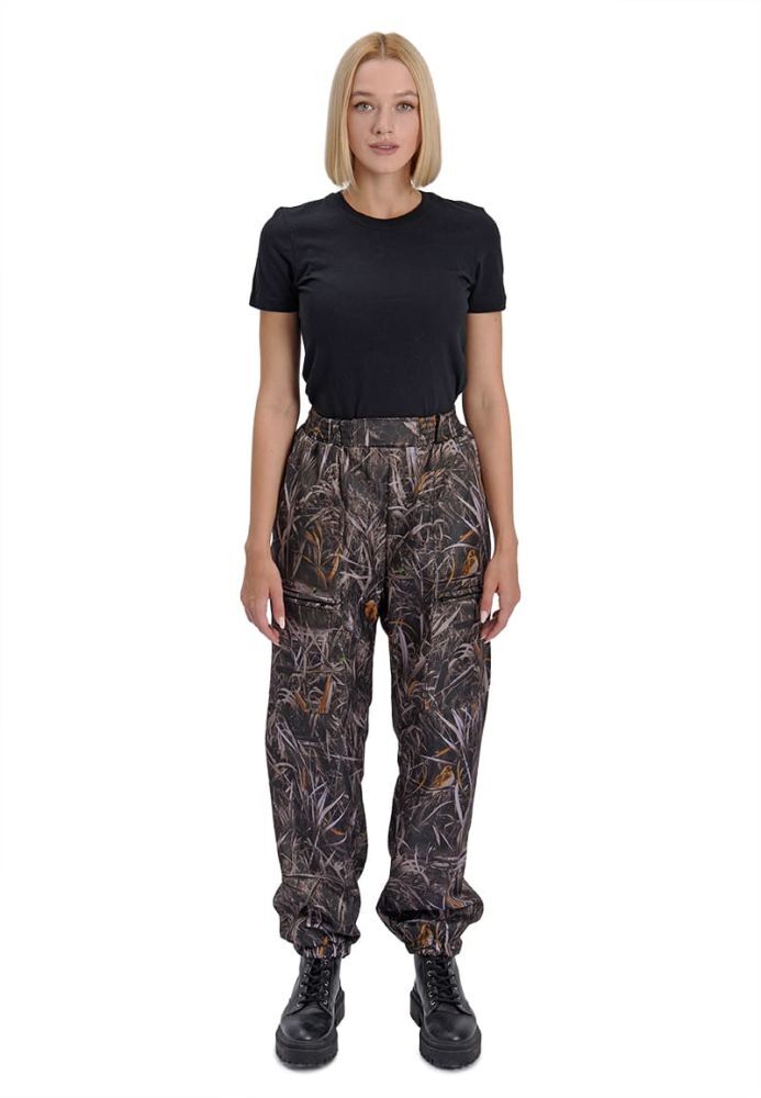 - Брюки: Прямые, с широкой резинкой на поясе и шлевками для ремня, оснащены двойными накладными карманами с удобным доступом.