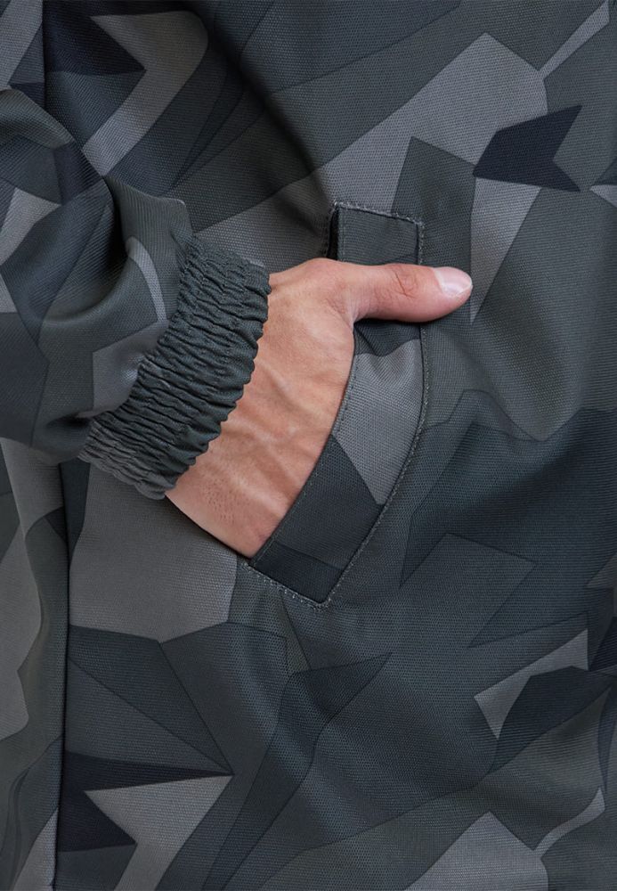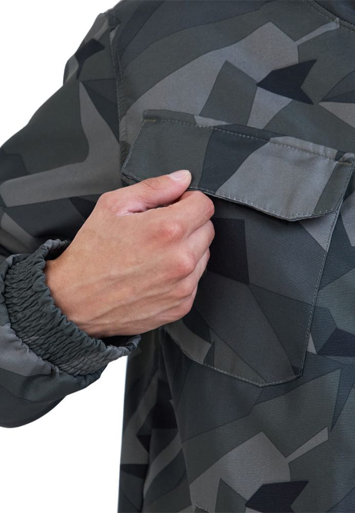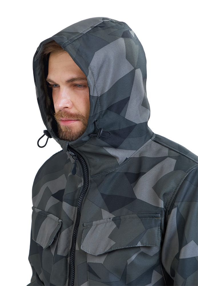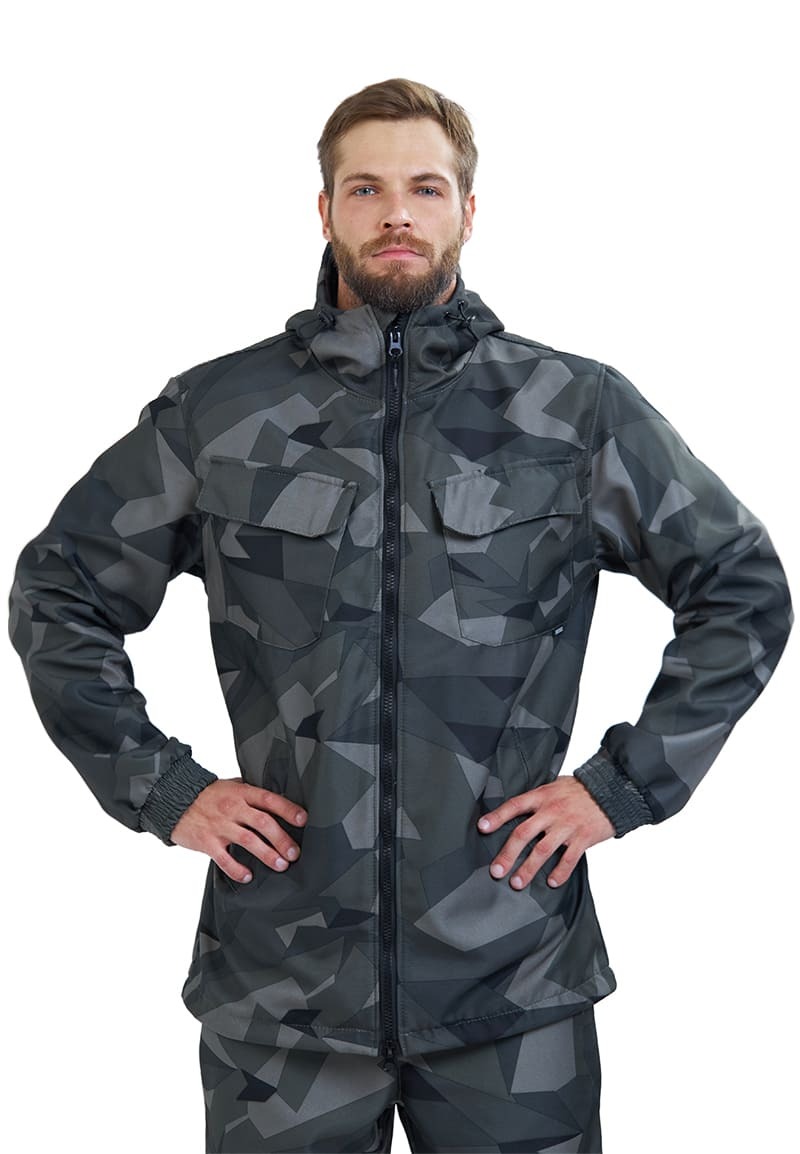 - Куртка: Прямой силуэт с центральной застежкой на молнии и внутренней ветрозащитной планкой. Нагрудные накладные карманы с клапаном на липучке обеспечивают удобный доступ к мелким предметам.