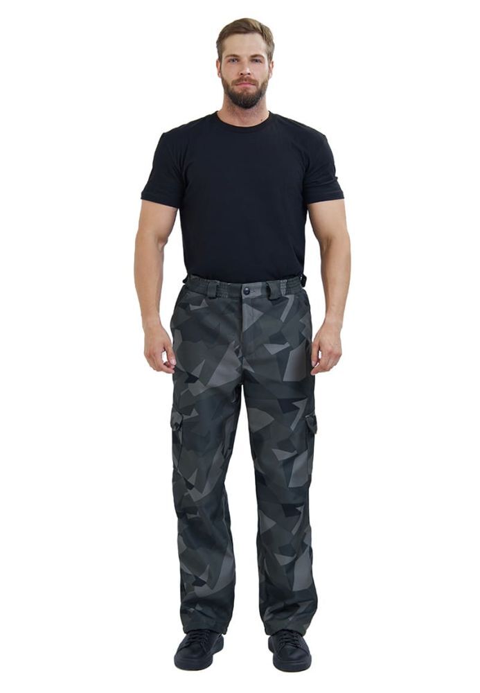 - Брюки: Прямые, с широким поясом и резинкой внутри, что обеспечивает комфорт и свободу движений. Объемные накладные карманы на боковых сторонах для хранения необходимых инструментов.