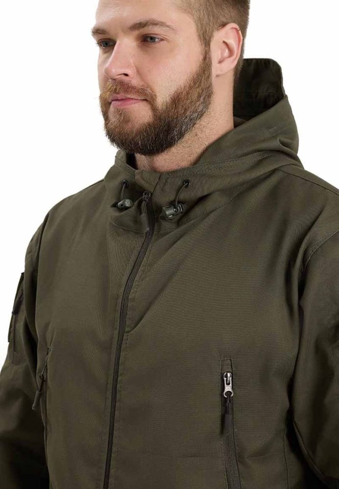 - Капюшон с козырьком и кулиской для регулировки, что гарантирует защиту от непогоды.