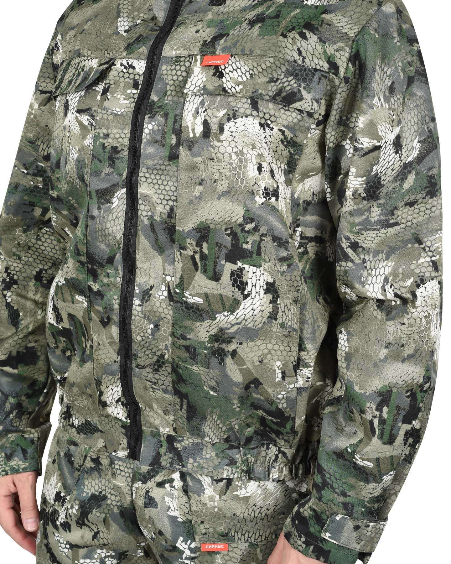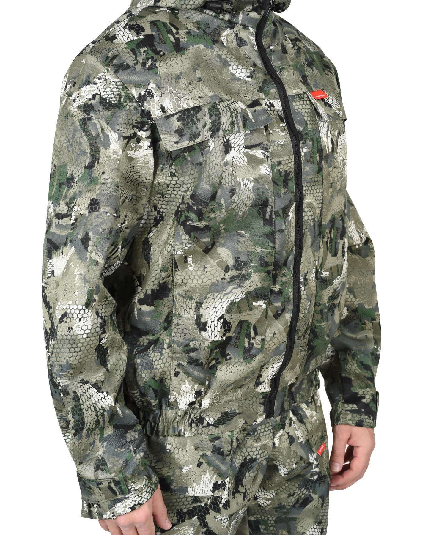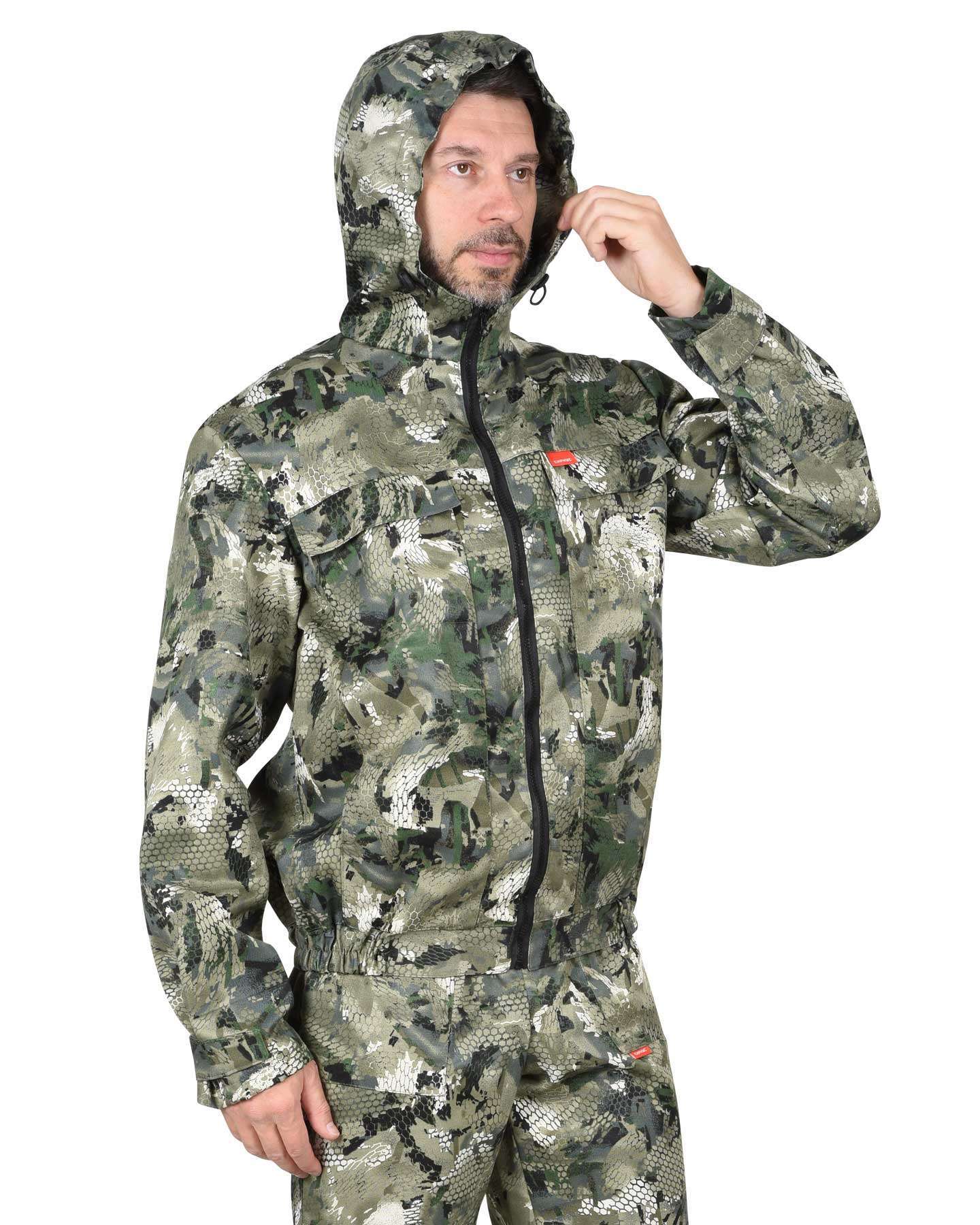 - Куртка: Короткая, прямого силуэта, с втачным капюшоном и противомоскитной сеткой. Центральная застежка на «молнию», нагрудные карманы с клапанами на липучках.