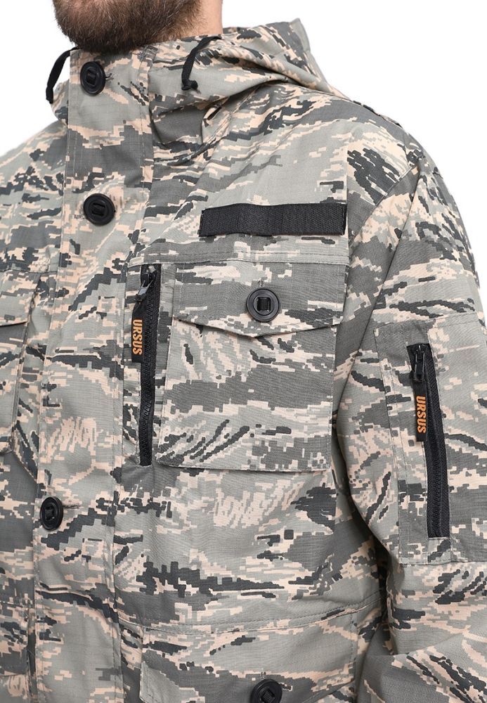 - Карманная система: Прорезной вертикальный карман на молнии и несколько накладных объемных карманов с клапанами.