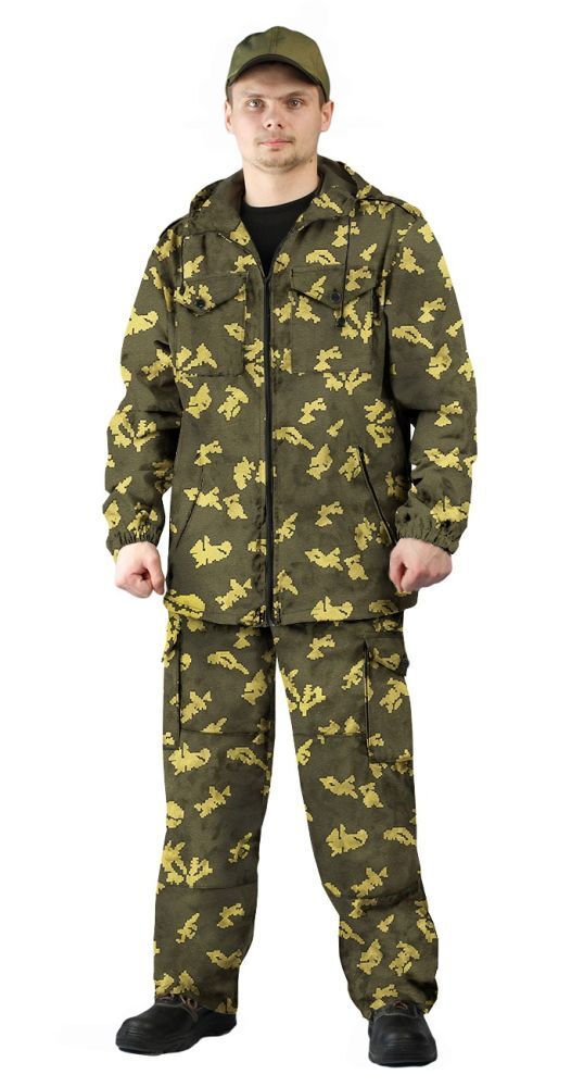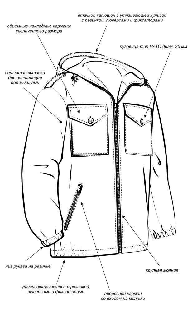 - Регулируемый капюшон: позволяет адаптировать костюм под любые погодные условия.