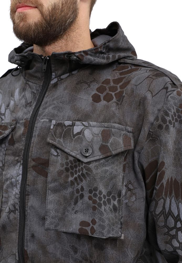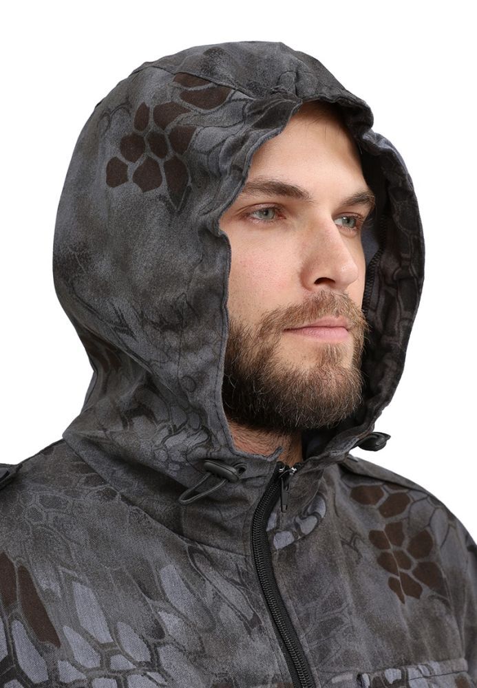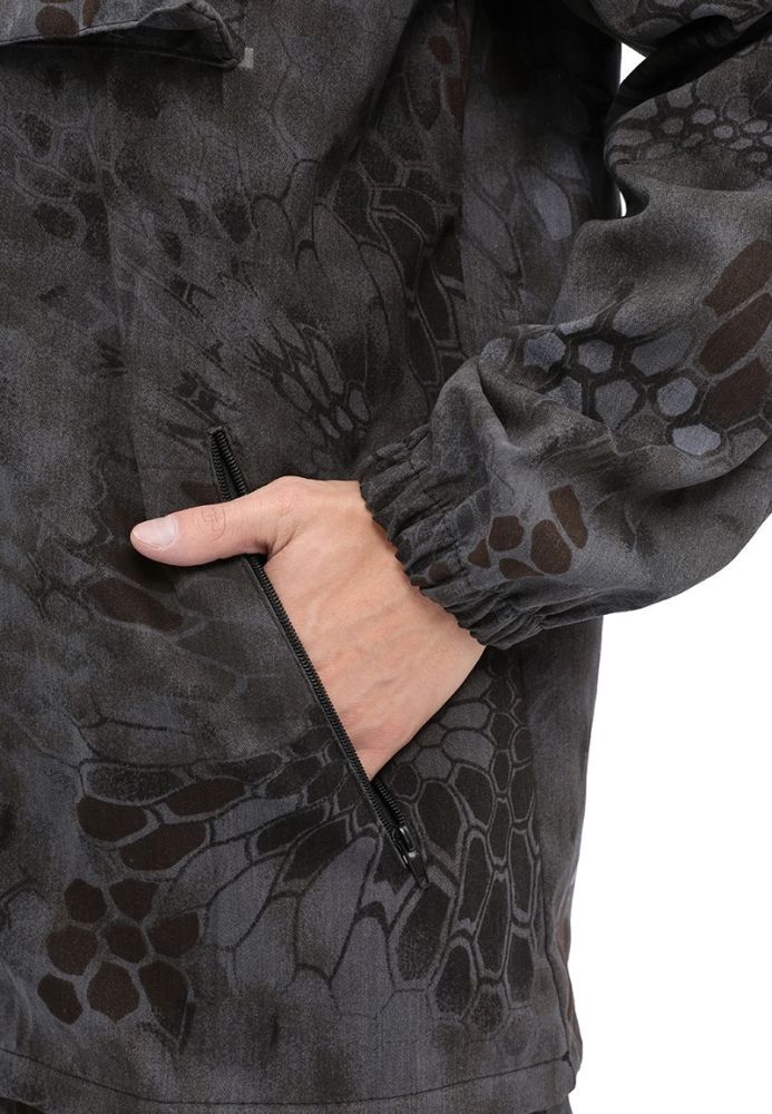 - Куртка: Центральная застежка на молнию, объемные накладные карманы с клапаном, фиксированная резинка на рукавах и кулиса с утяжкой по низу для лучшей посадки.