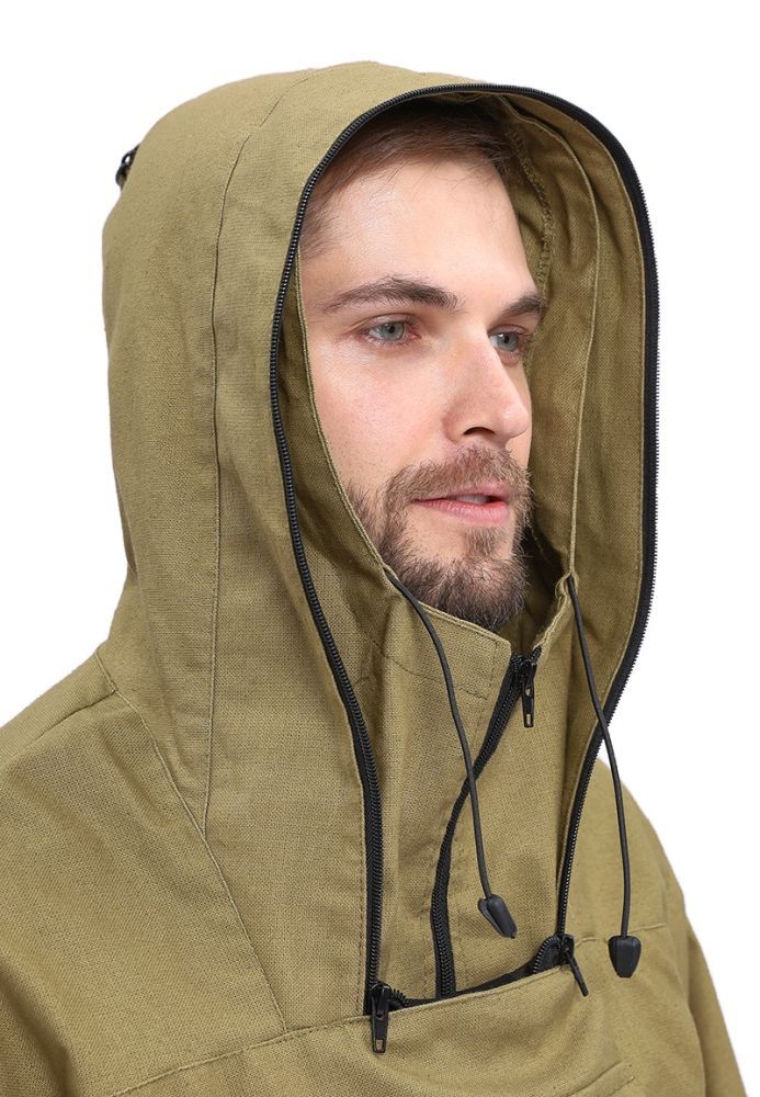 - Противомоскитная сетка: съемная, расположена на молнии по лицевой части капюшона, убирается в потайной карман.