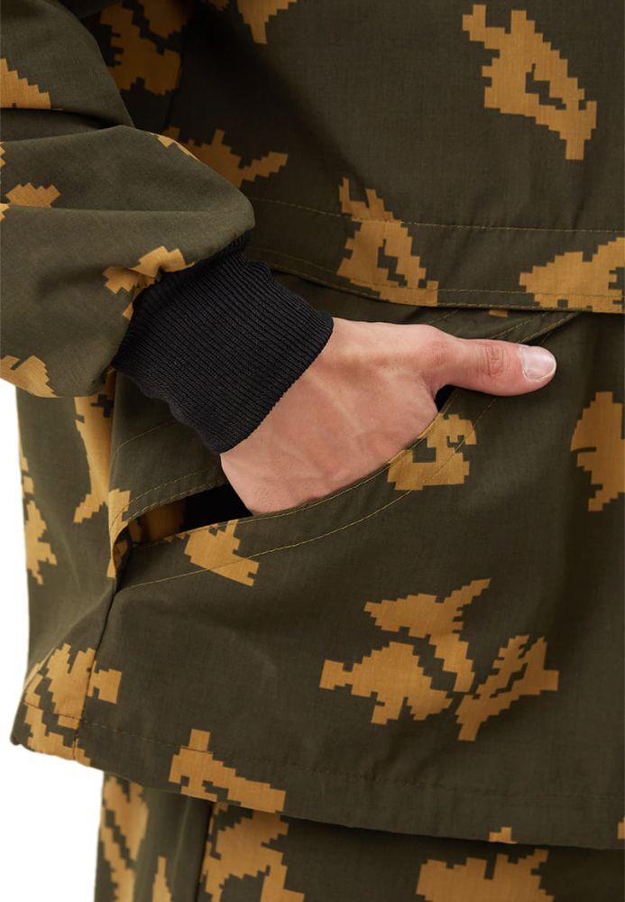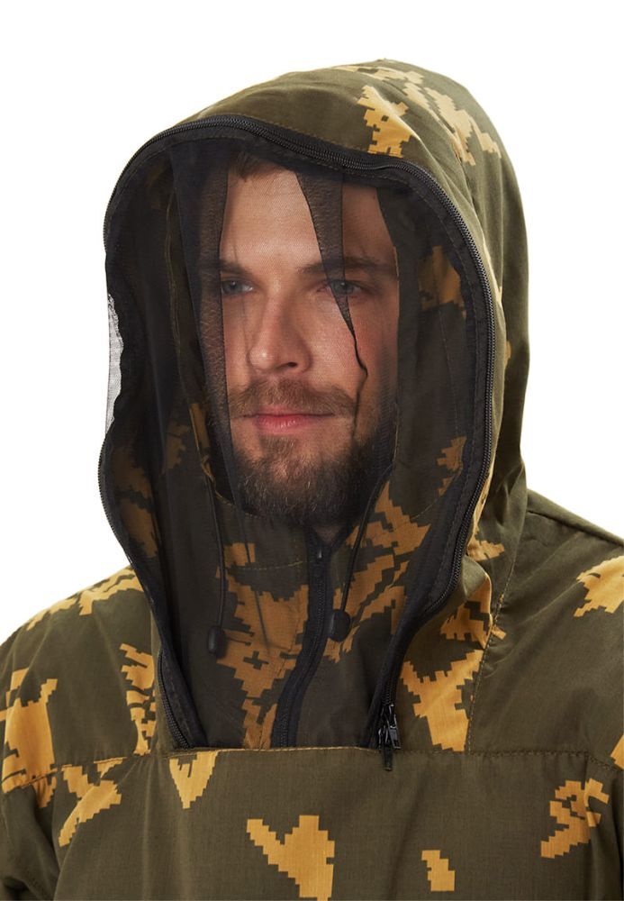 - Куртка: Прямой силуэт с молнией, объемным несъемным капюшоном, который регулируется по объему. Противомоскитная сетка на молнии, убирающаяся в потайной карман.