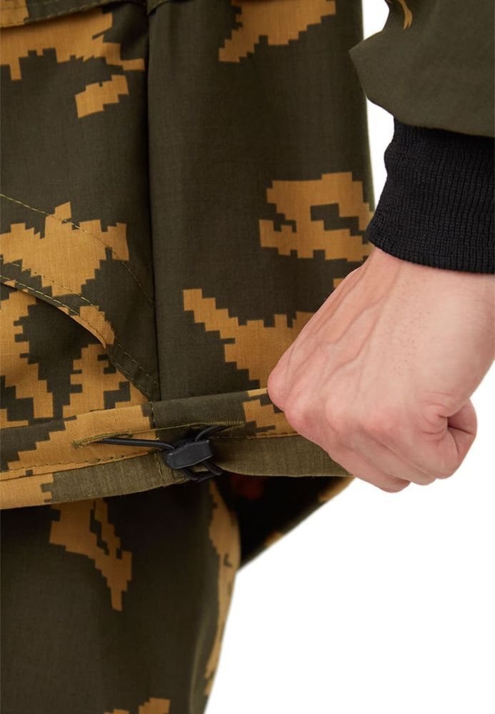 - Брюки: Прямые, с притачным поясом, резинкой и шлевками для ремня, боковыми карманами и регулируемой шириной внизу.
