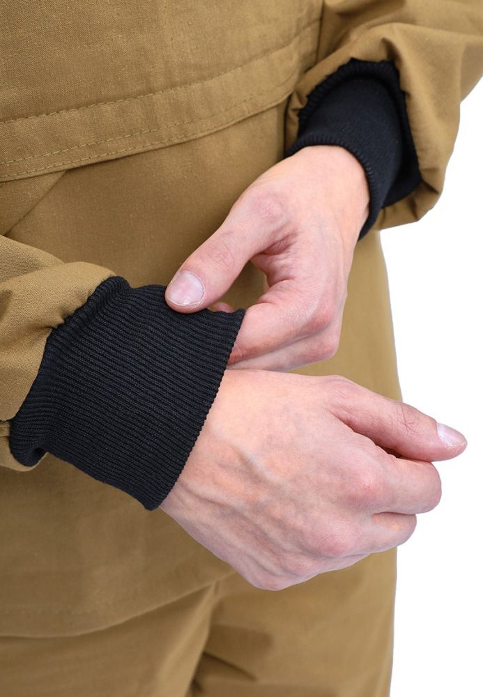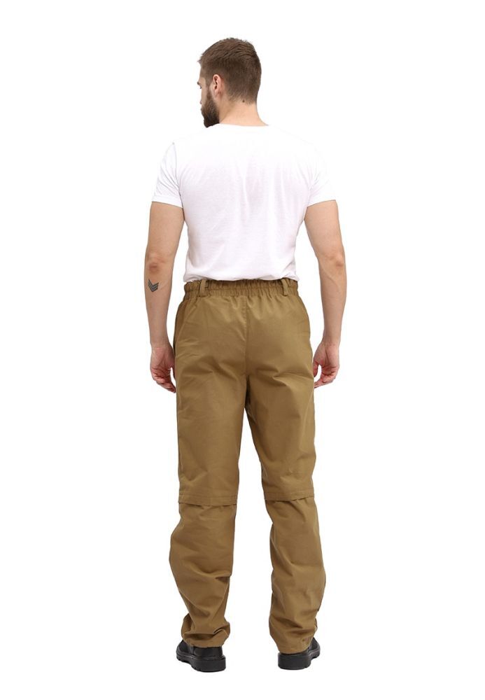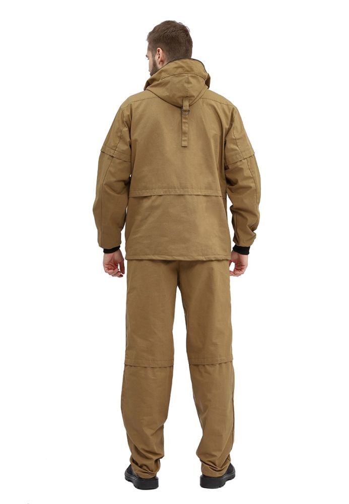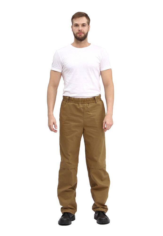 - Брюки: Прямые, с притачным поясом на резинке и шлевками для ремня, боковые карманы и регулируемая ширина нижней части.