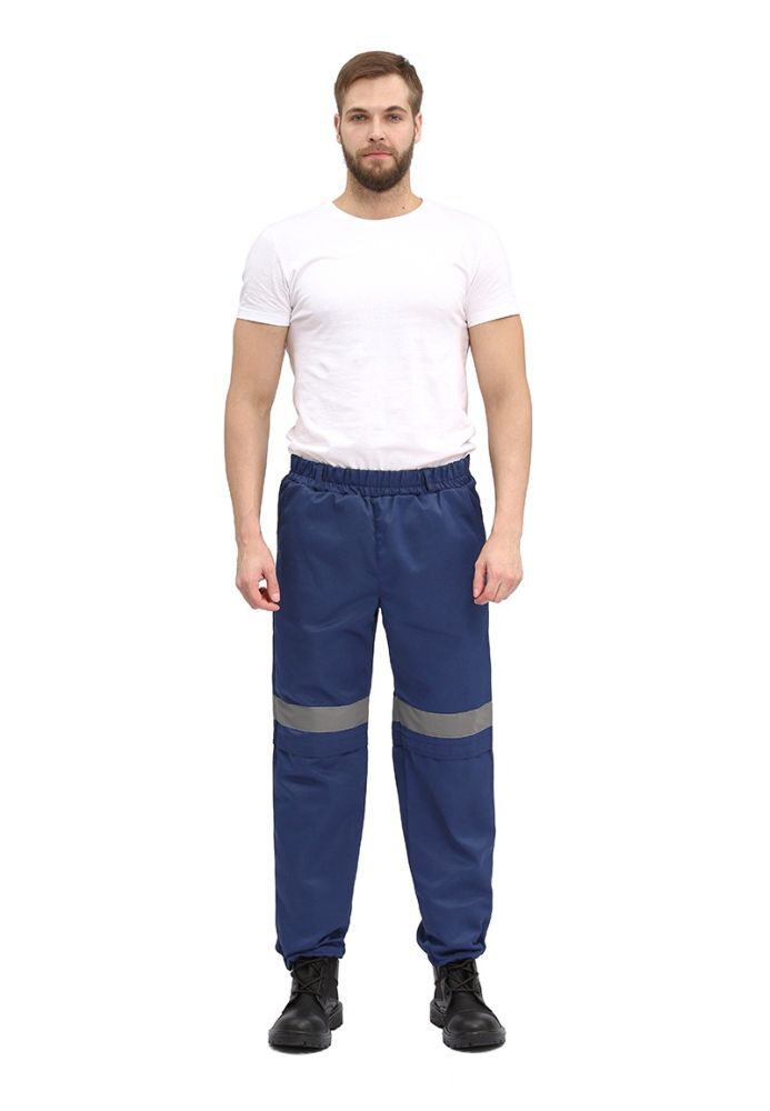- Брюки: прямые, с притачным поясом и боковыми карманами.