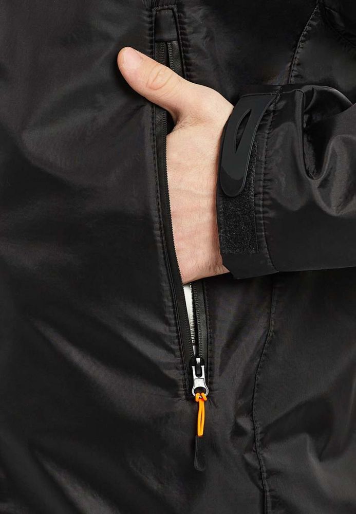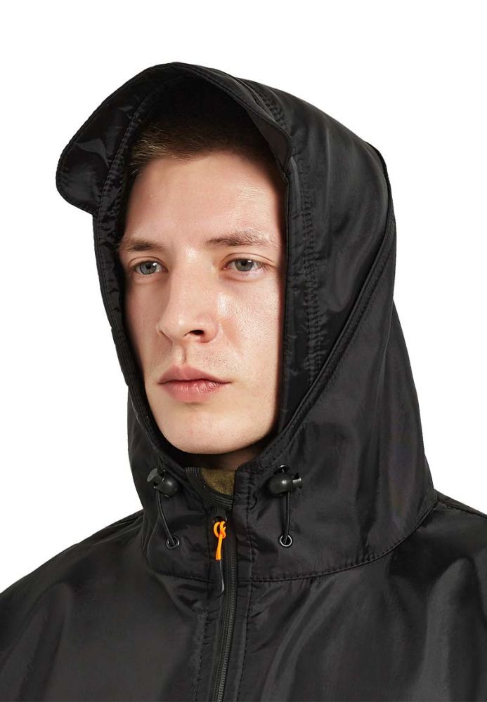 - Капюшон: Регулируемый капюшон с козырьком и утяжкой, который можно свернуть.