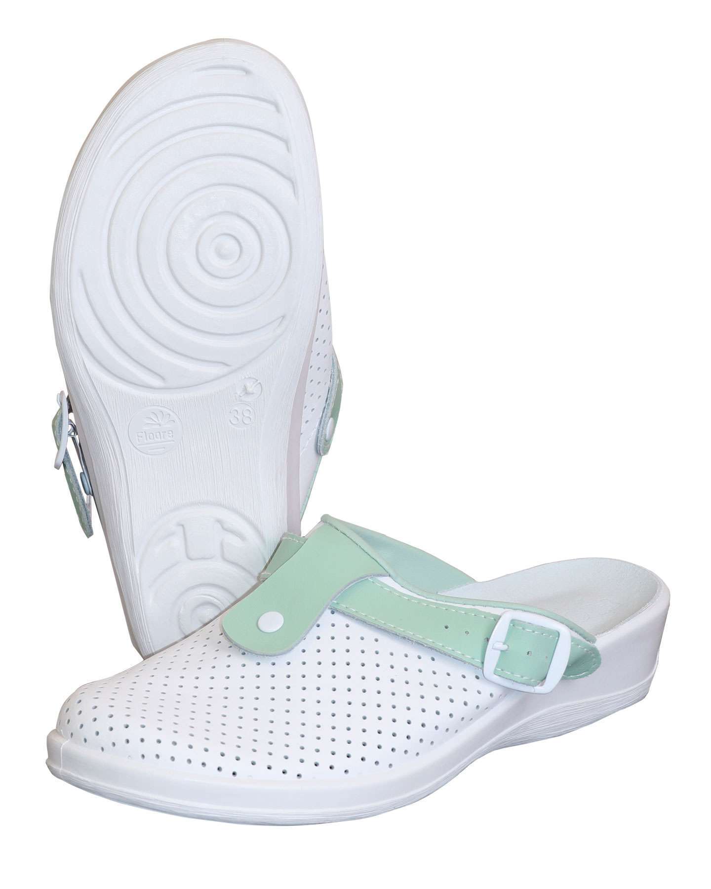 Туфли Сабо Комфорт белые с зеленым нат.кожа