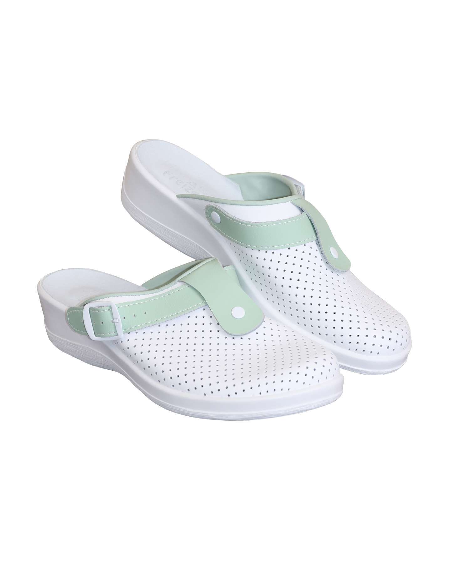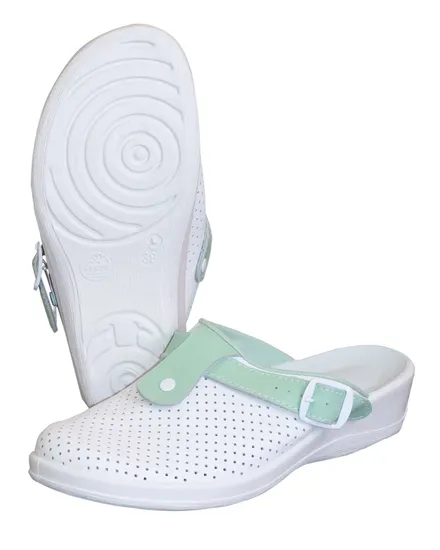 Туфли Сабо Комфорт — это идеальное решение для предприятий и заводов, где требуется удобная и практичная обувь для сотрудников. Изготовленные из натуральной кожи, эти туфли обеспечивают высокий уровень комфорта и долговечности, что делает их отличным выбором для летнего сезона. Белый цвет с зелеными акцентами придаёт обуви стильный вид, который будет уместен в любом рабочем окружении.
