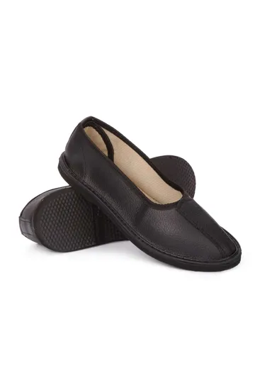 Закрытые кожаные тапочки черного цвета для работников легкой промышленности