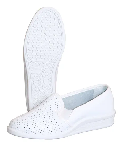 Женские туфли 'Матильда' — это надежная и стильная обувь, созданная специально для работников медицинских учреждений, сферы обслуживания, легкой и пищевой промышленности. Их белый цвет и лаконичный дизайн делают их не только практичными, но и элегантными, что позволяет использовать их и в повседневной жизни.