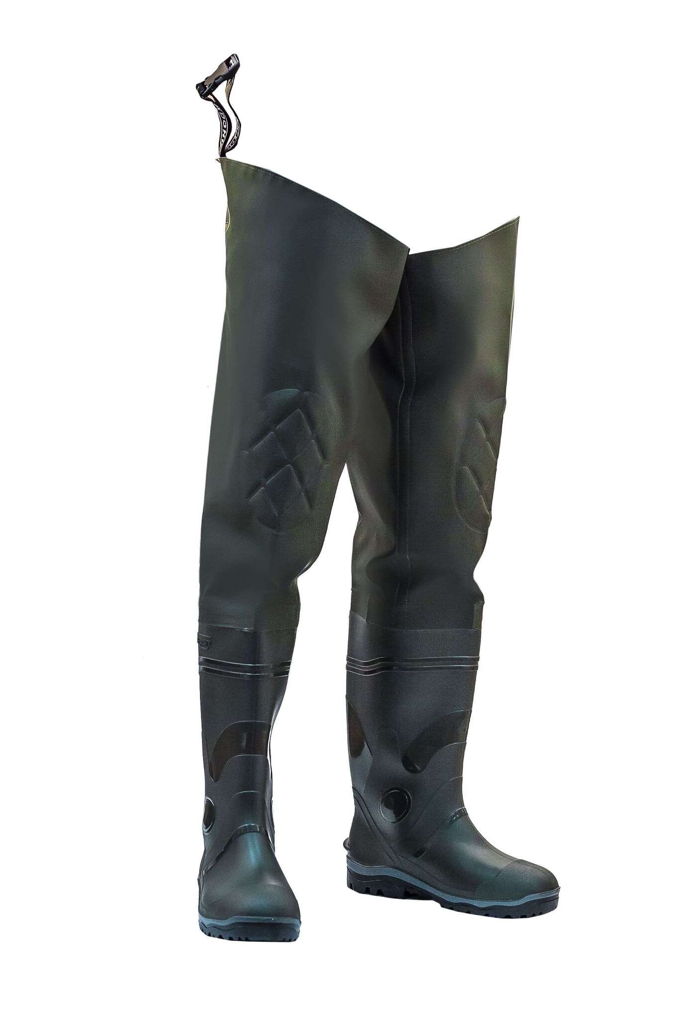 - Конструкция: Сапоги имеют специальный ремешок для фиксации к одежде или ремню, что предотвращает их сползание. Область колена защищена наколенником из Винитола и поролона, что обеспечивает дополнительную защиту.