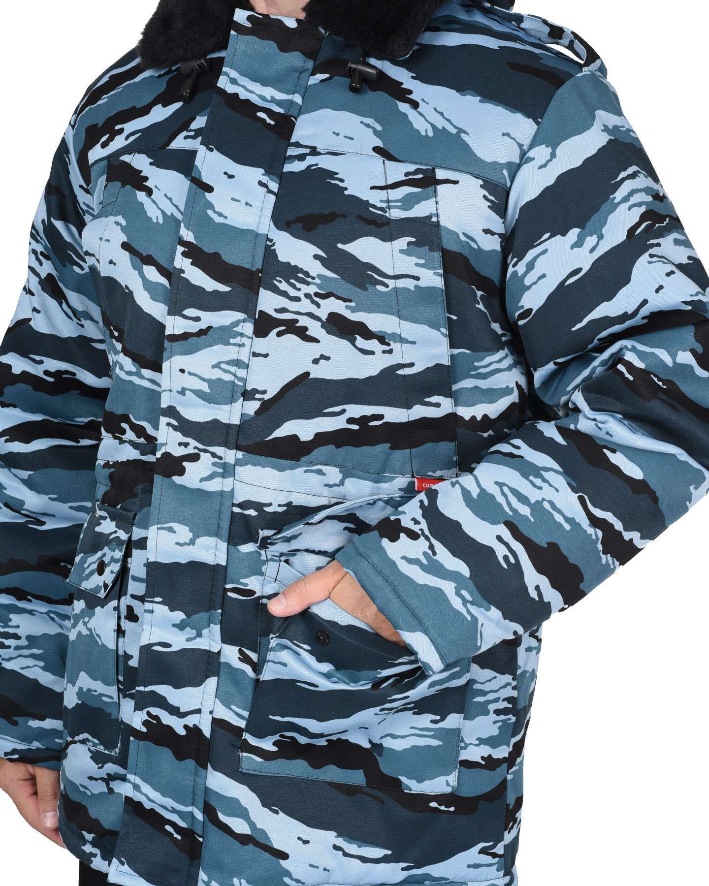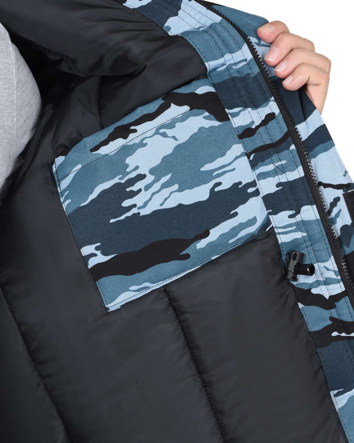 - Комфорт: Отложной воротник и пристёгивающийся капюшон обеспечивают дополнительную защиту, а внутренние трикотажные манжеты на рукавах предотвращают попадание холодного воздуха.