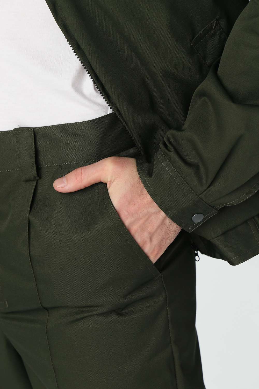 - Куртка: укороченная на поясе, с центральной застежкой-молния и отложным воротником, что обеспечивает легкость в использовании.