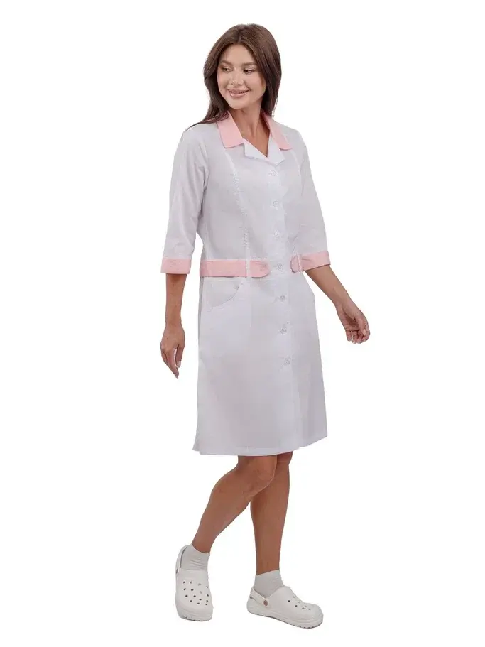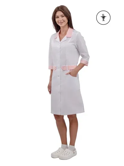 Халат женский Фарма белый с розовым: идеальный выбор для медицинских и косметологических учреждений