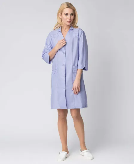 - Удобство: Центральная застежка и рукава 3/4 обеспечивают комфорт при работе, не ограничивая движения.