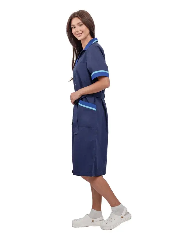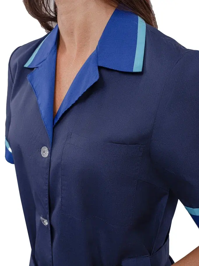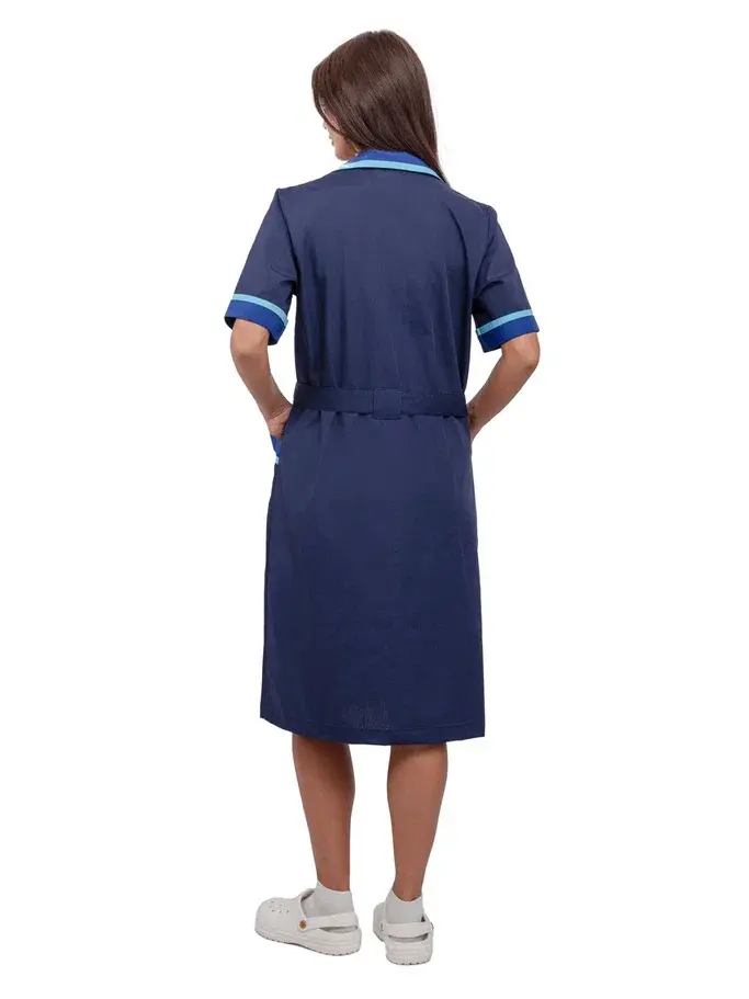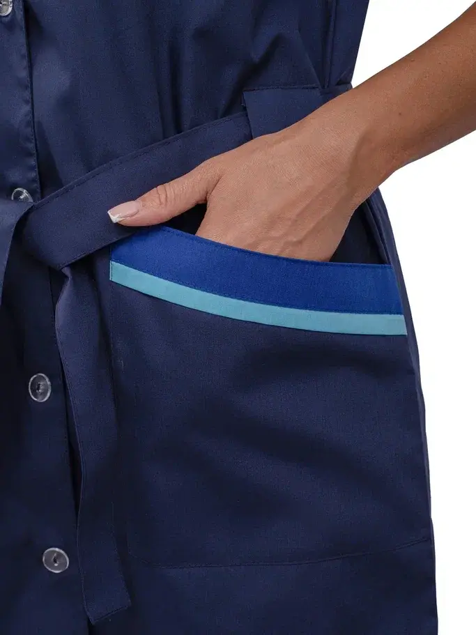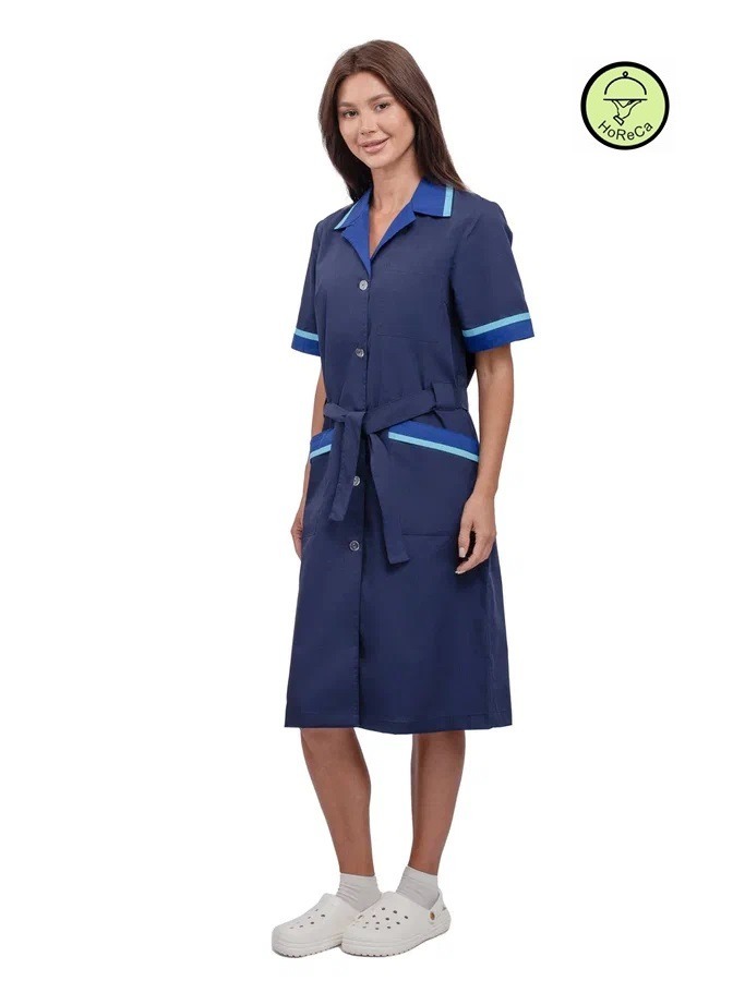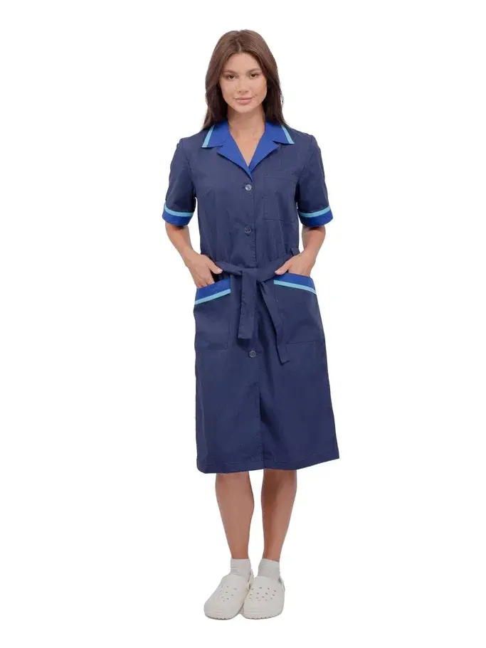 Представляем вам женский халат «Прибой» в цветах тёмно-синий, васильковый и голубой, который станет незаменимым элементом униформы для работников сферы обслуживания. Этот халат сочетает в себе стильный дизайн и высокую функциональность, обеспечивая комфорт и защиту от загрязнений. Изготовленный из высококачественной смесовой ткани, он гарантирует долговечность и легкость в уходе, что делает его идеальным решением для клининговых служб, гостиничного бизнеса и производственных предприятий.
