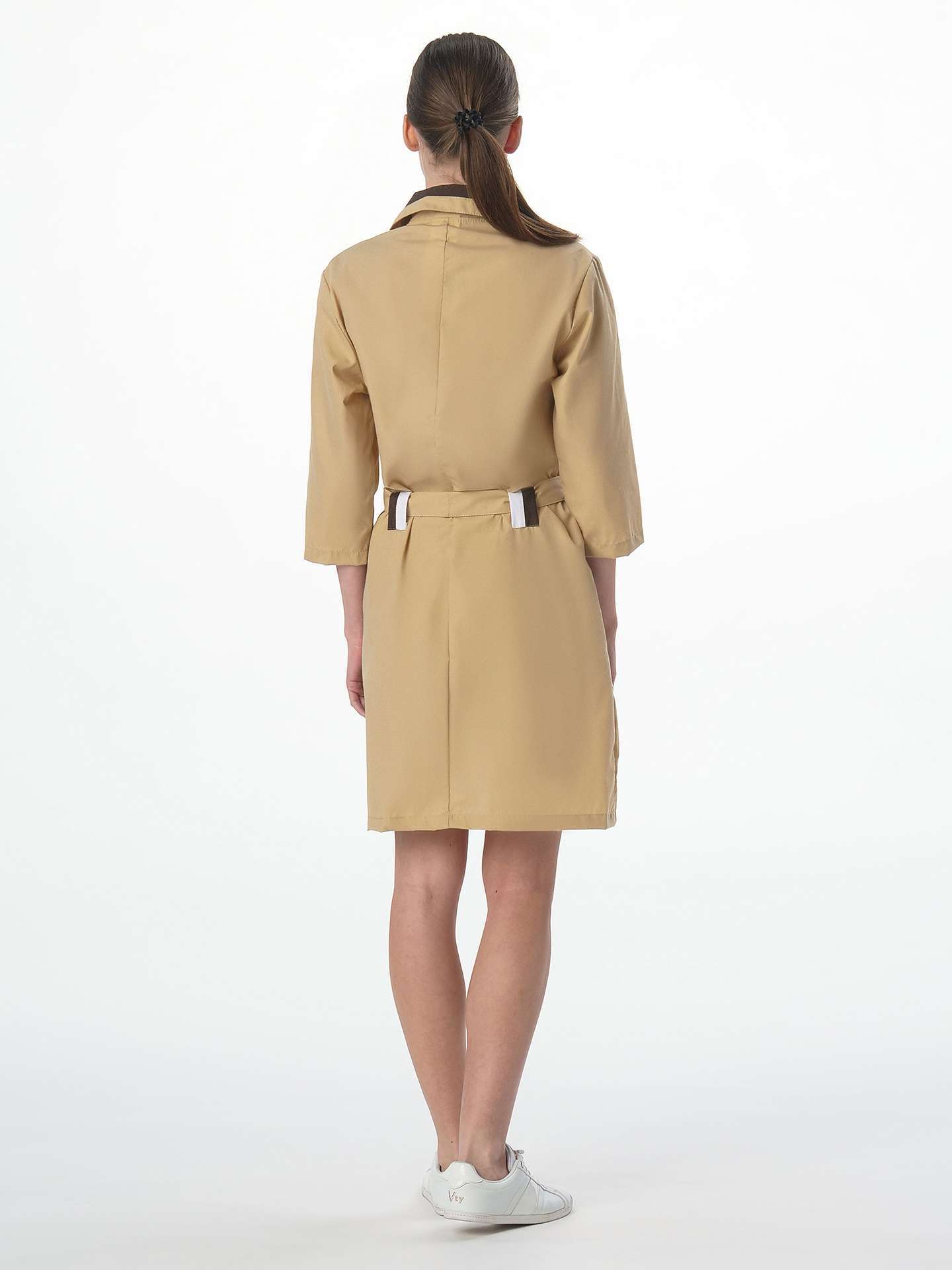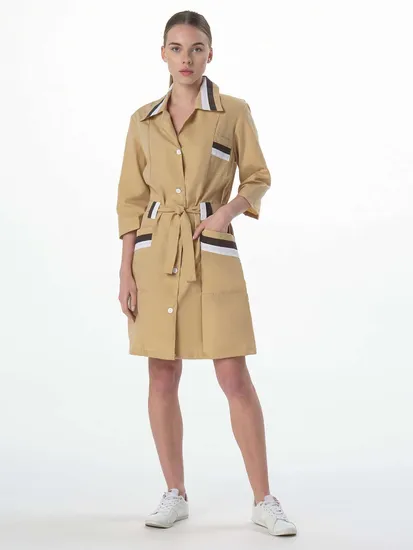 Представляем вашему вниманию халат женский с поясом Флора, который идеально сочетает в себе стиль и функциональность. Этот халат полуприталенного силуэта выполнен из высококачественной ткани ТиСи, обеспечивая комфорт и долговечность в эксплуатации. Центральная застежка на пуговицах и английский воротник придают изделию элегантный вид, а три накладных кармана делают его практичным для повседневного использования.