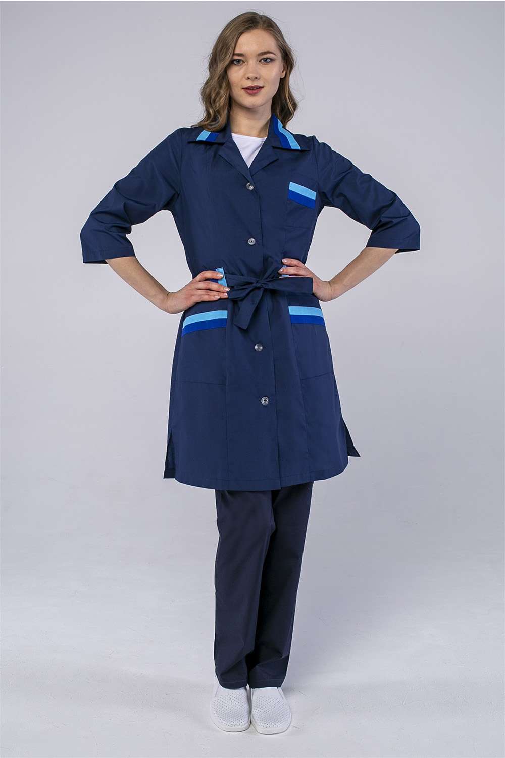 Халат женский с поясом Флора (тк.ТиСи), т.синий/васильковый