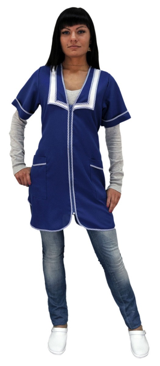 Представляем вам халат женский Сакура васильковый — стильный и функциональный элемент униформы, который станет незаменимым в сфере обслуживания и торговли. Этот халат сочетает в себе элегантный дизайн и практичность, что делает его отличным выбором для работников гостиниц, ресторанов и магазинов. Декоративный воротник и объемный пояс подчеркивают фигуру, а застежка на молнии обеспечивает удобство в носке.